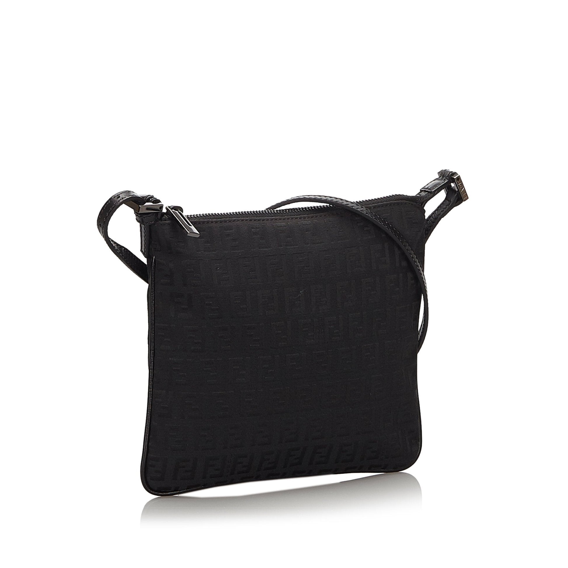 Fendi Black Canvas Fabric Zucchino Crossbody Bag Italy