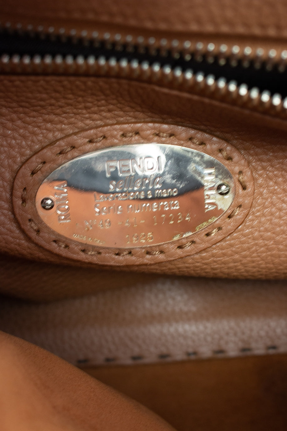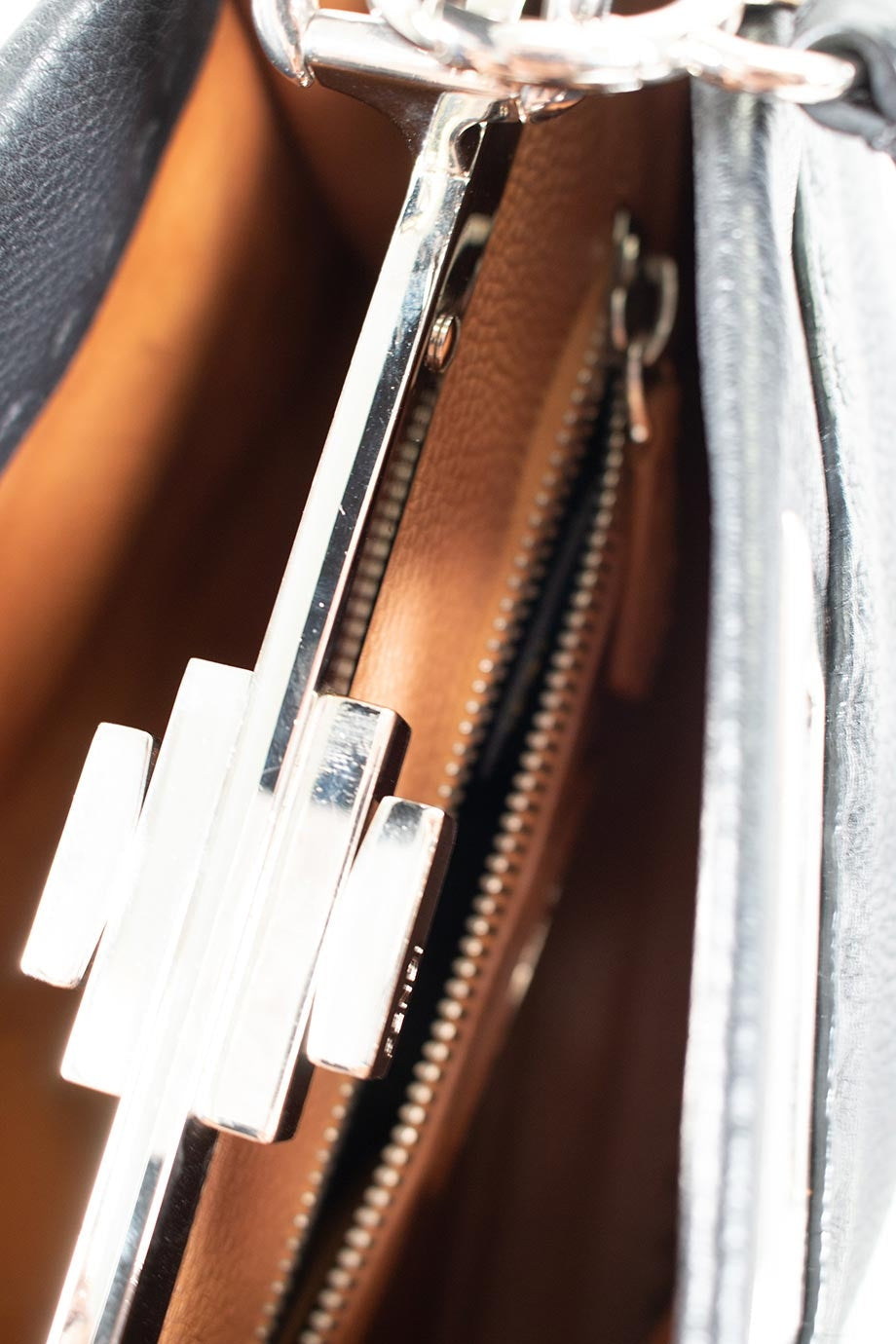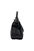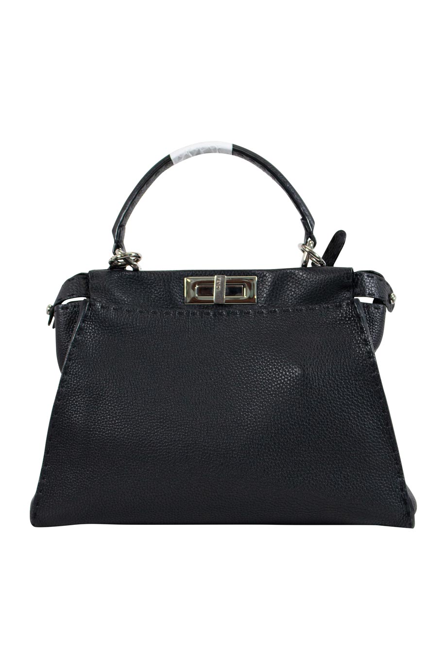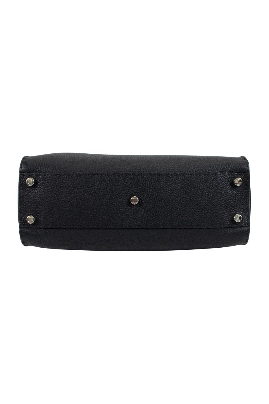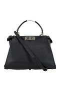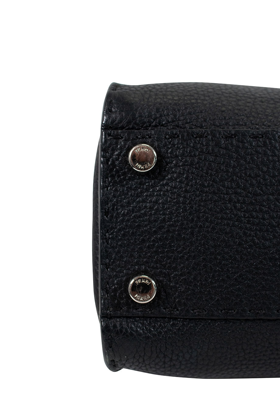 FENDI Black grained leather 'Peekaboo' with tonal topstitching and crossbody strap, silver-tone hardware