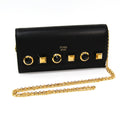 This is an , Fendi Leather Plexiglass Shoulder Wallet Bag. This shoulder bag is crafted from black patent plexiglass leather with black and gold studded hardware along the front. This shoulder bag is multifunctional and is perfect for a night out which doubles as a wallet as well.