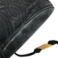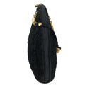 Fendi, black quilted suede with a 'pasta' or 'noodle' design, two way, sling style- clutch or cross body bag with gold 'pasta' accent beads