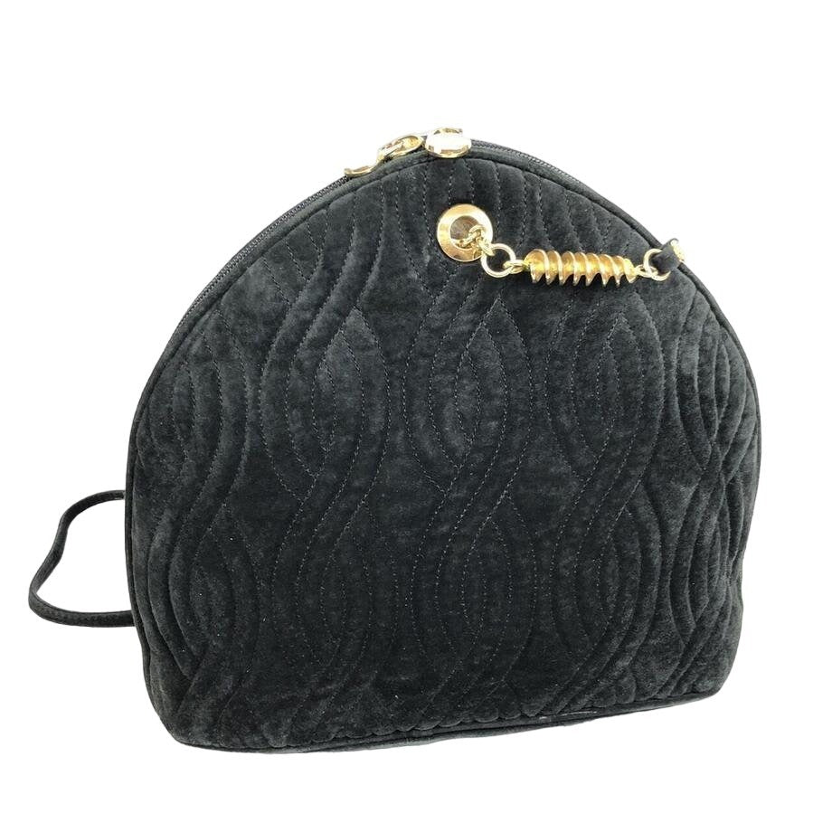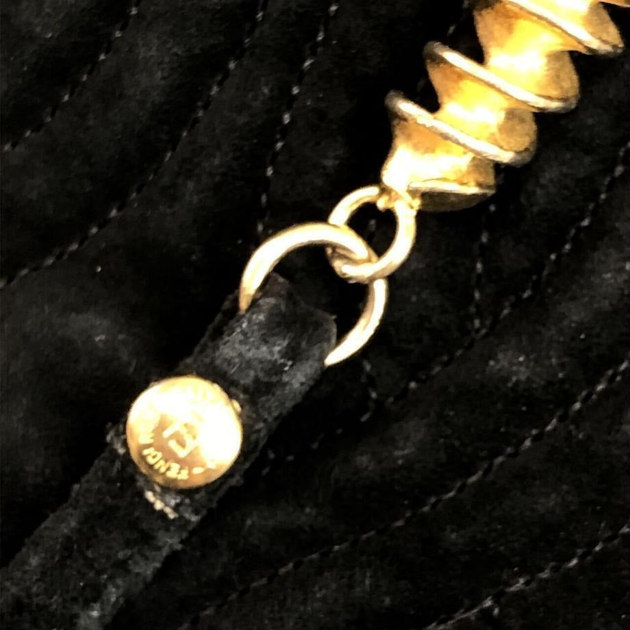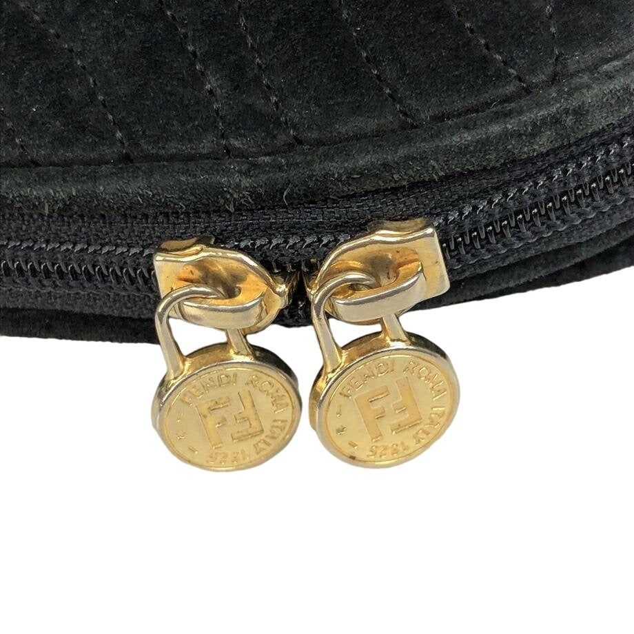 This early bag by Fendi is amazing! It is a petite sling style, two way style made of a black quilted suede in a 'pasta' or 'noodle' design and gold beads that look like types of pasta attached throughout the removable shoulder strap. It is a petite two-way style that can be worn as a shoulder or cross body style or the strap, which is attached with toggles can easily be removed. This early quilted suede/leather or 'pasta/noodle' line by Fendi has been re-released with quilted logo designs and designs that are more geometric and linear in the leather and suede.