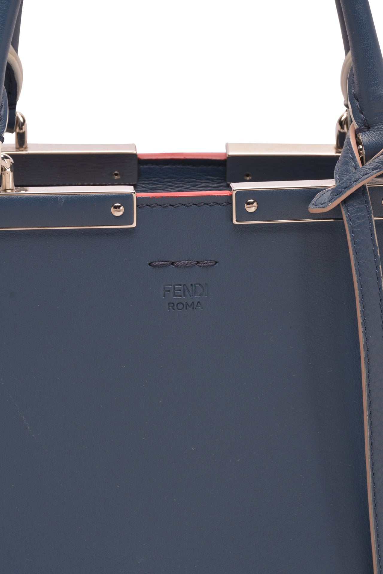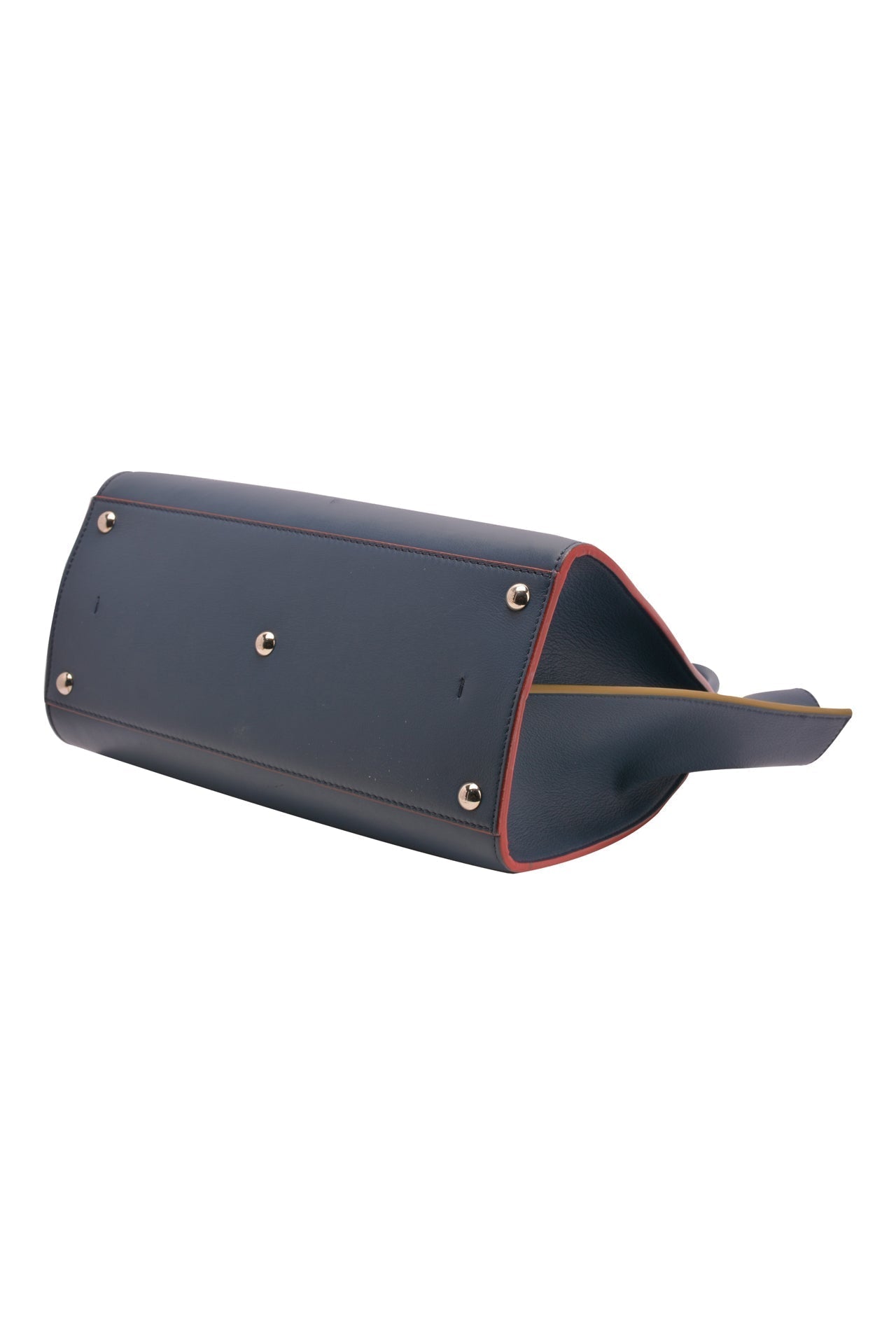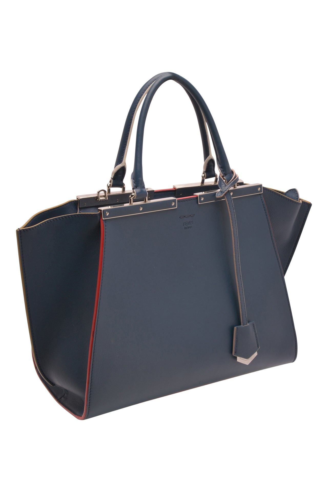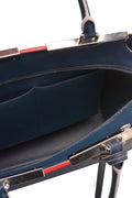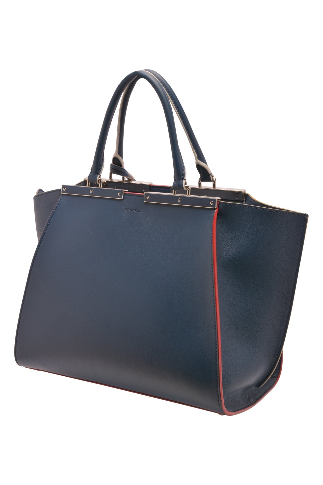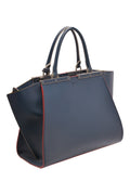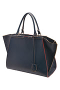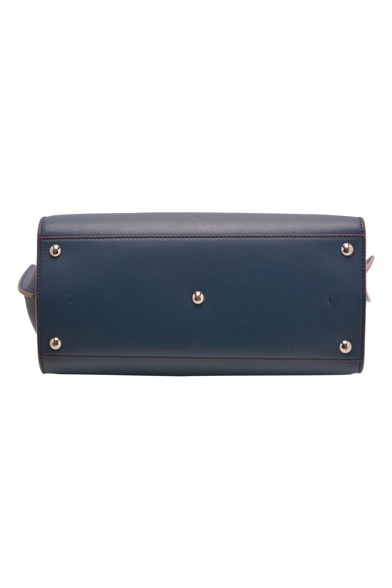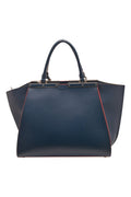 This lovely tote is finely crafted of smooth blue calfskin leather with contrasting multicolor resin glazing.