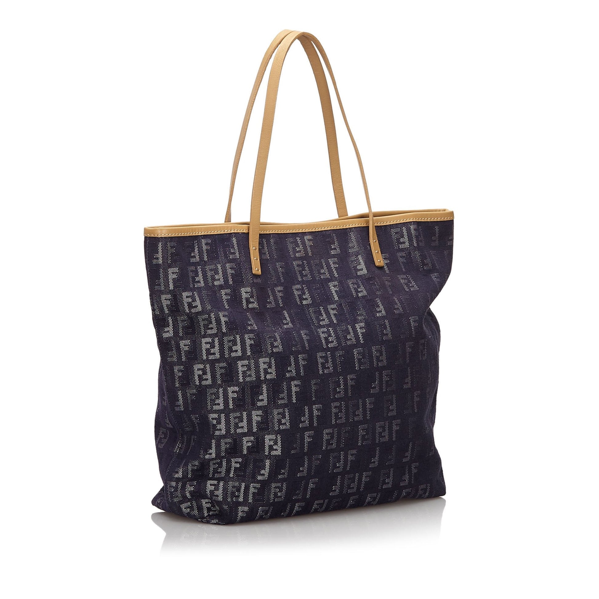 Fendi Blue Navy Denim Fabric Zucchino Tote Bag Italy