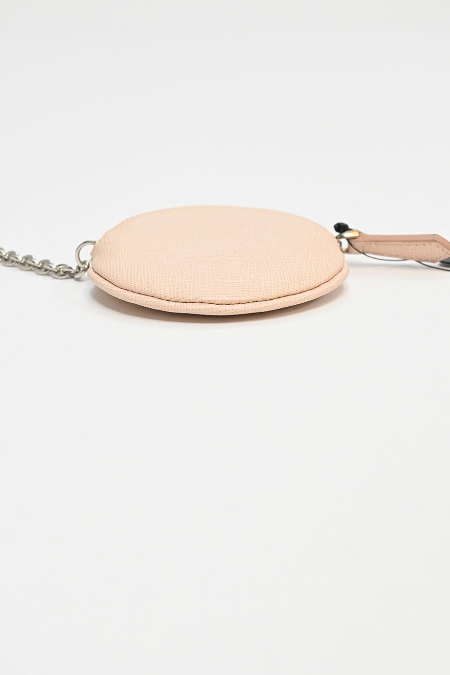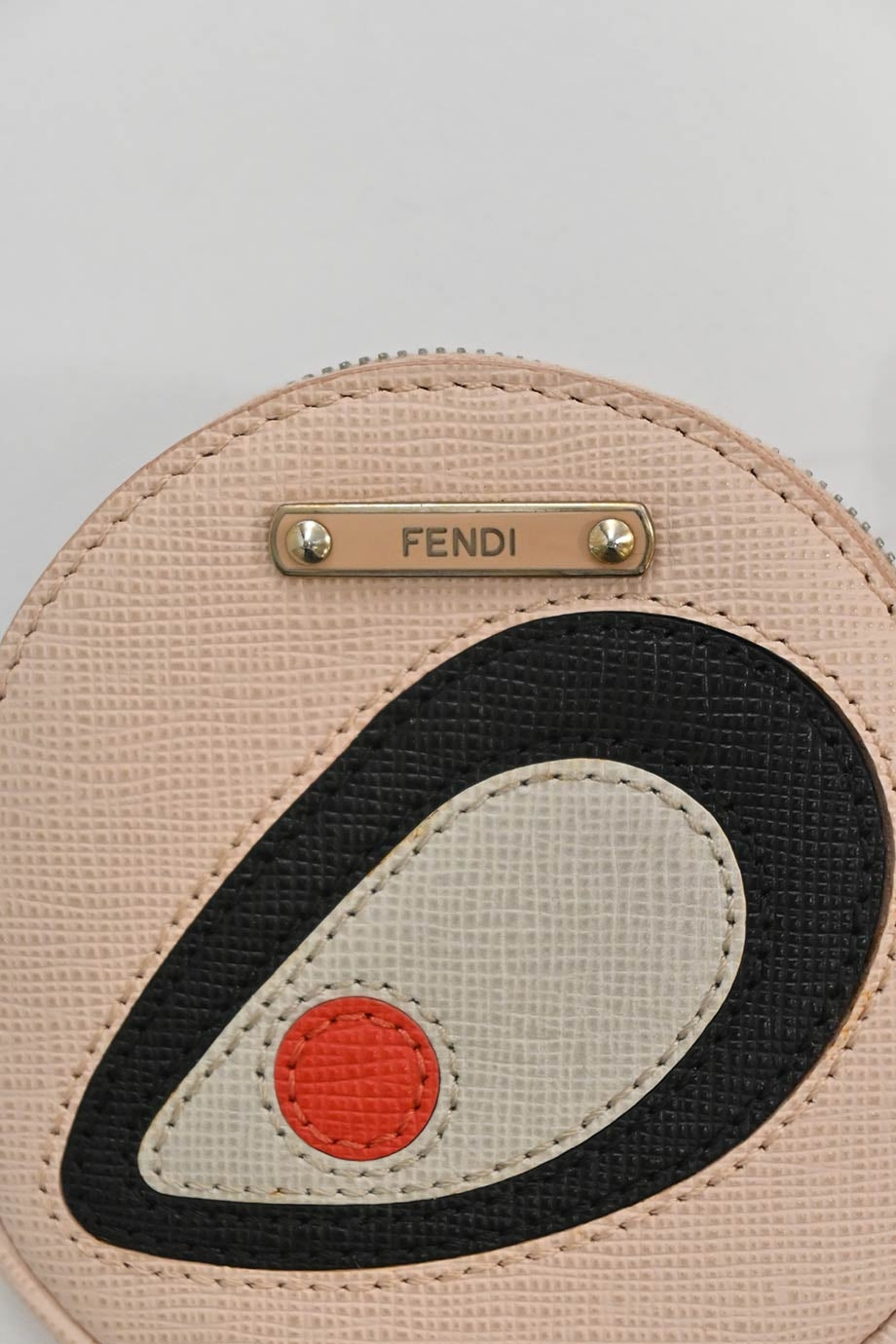 FENDI Blush leather Monster Eye round coin purse keychain with lobster clasp chain