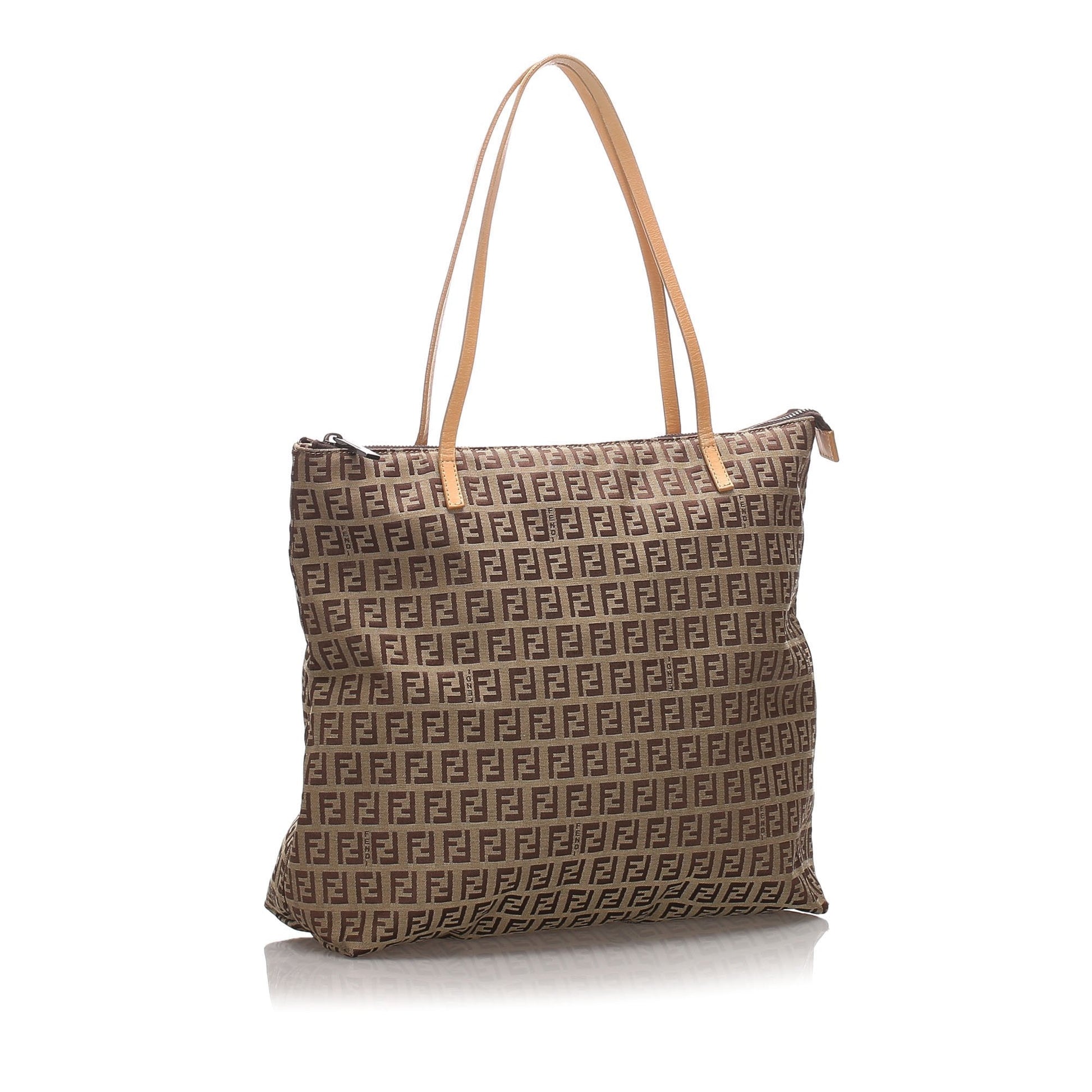 Fendi Brown Beige Canvas Fabric Zucchino Tote Bag Italy