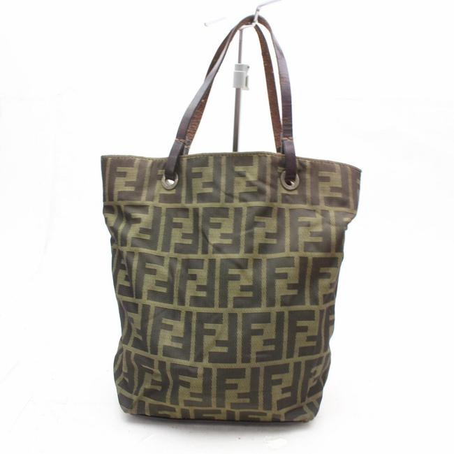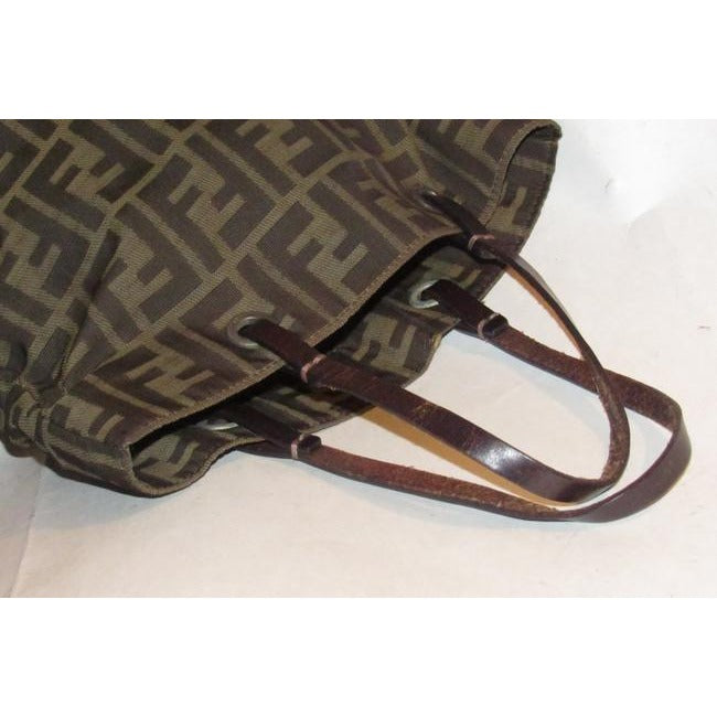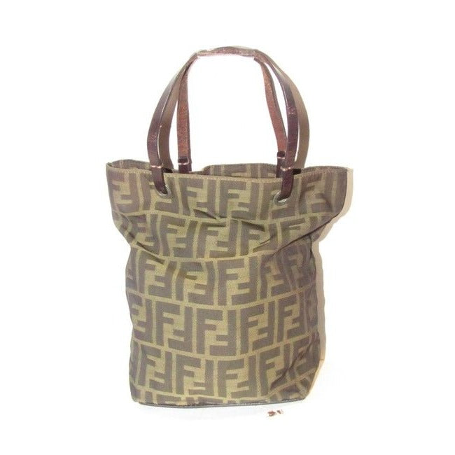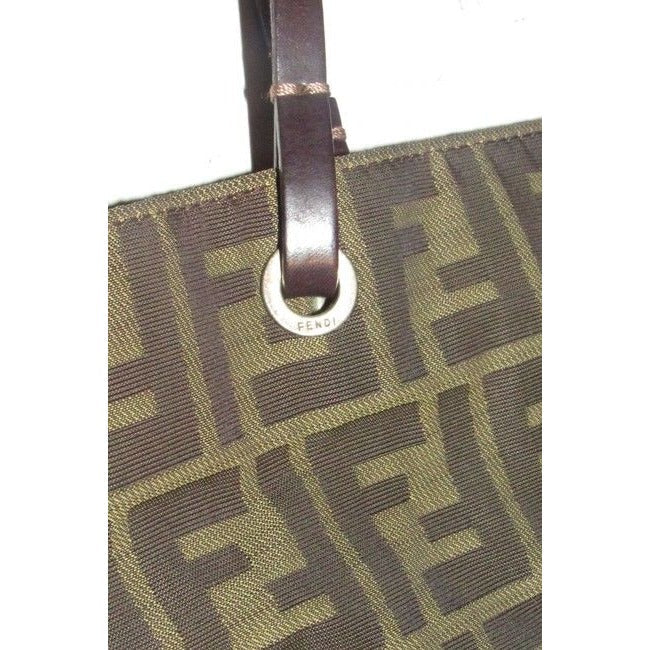 Fendi Brown Tobacco Zucca Large F Logo Print Canvas And Brown Leather Tote
