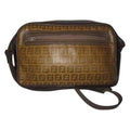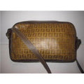 Fendi Canvasleather Cross Bodyshoulder Purse Yellow Zucchino Printbrown Leathercoated Canvas Shoulde