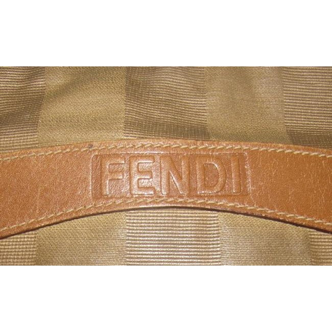 Fendi Canvasleather Cross Bodyshoulder Tan Wide Stripe Printcamel Coated Canvas And Leather Shoulder