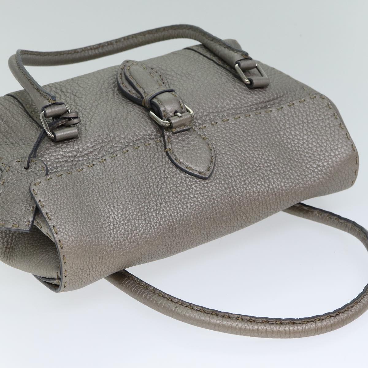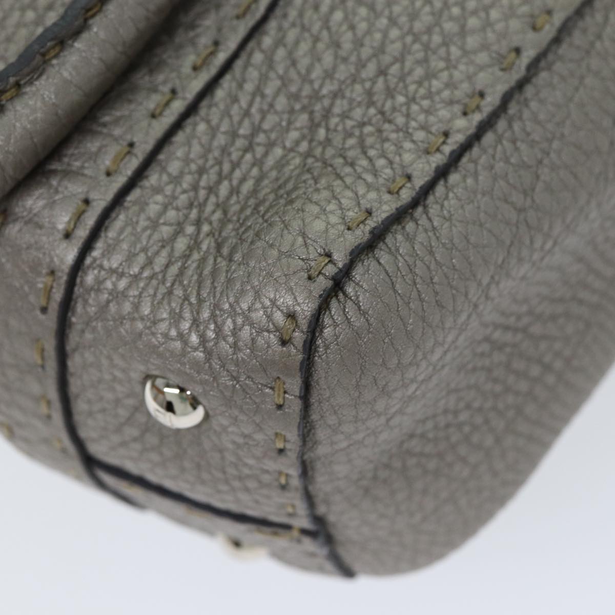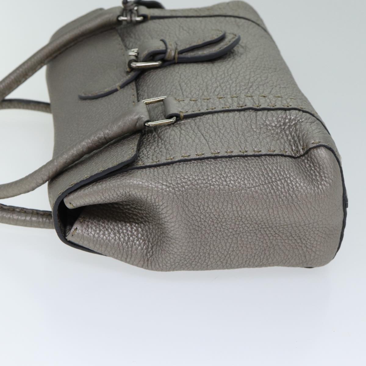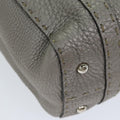 FENDI Celeria Hand Bag Leather Silver Auth 78418