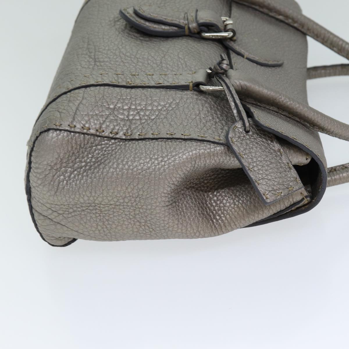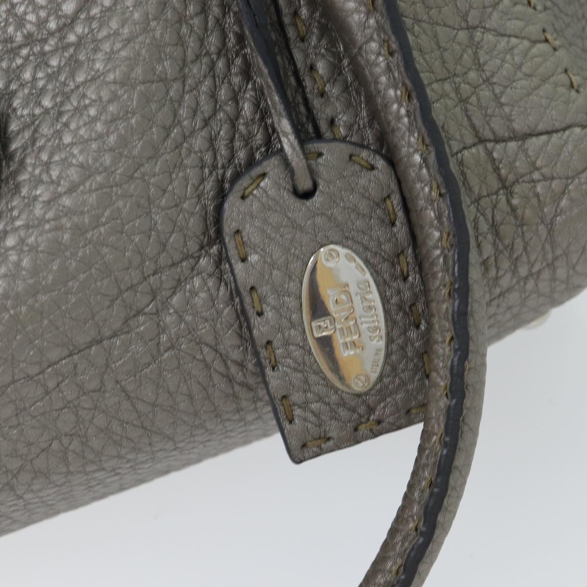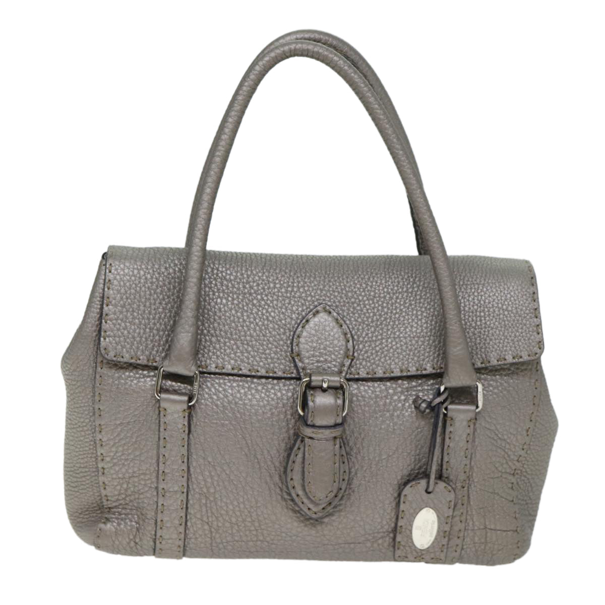 FENDI Celeria Hand Bag Leather Silver Auth 78418