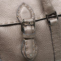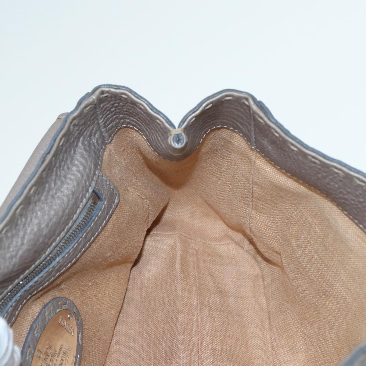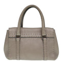 FENDI Celeria Hand Bag Leather Silver Auth 88496
