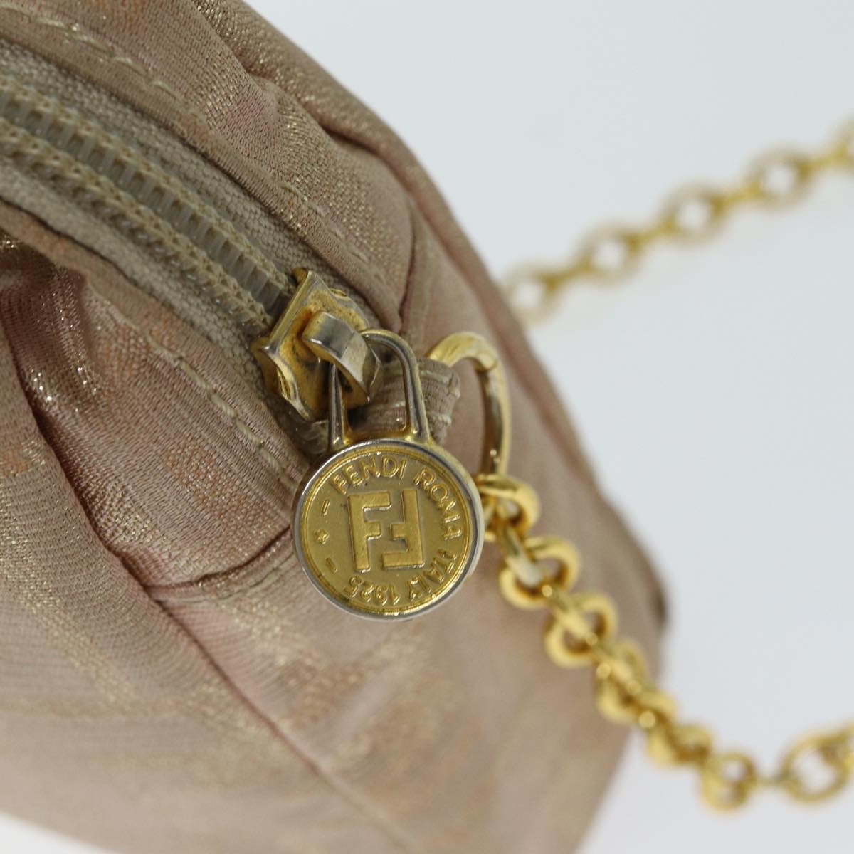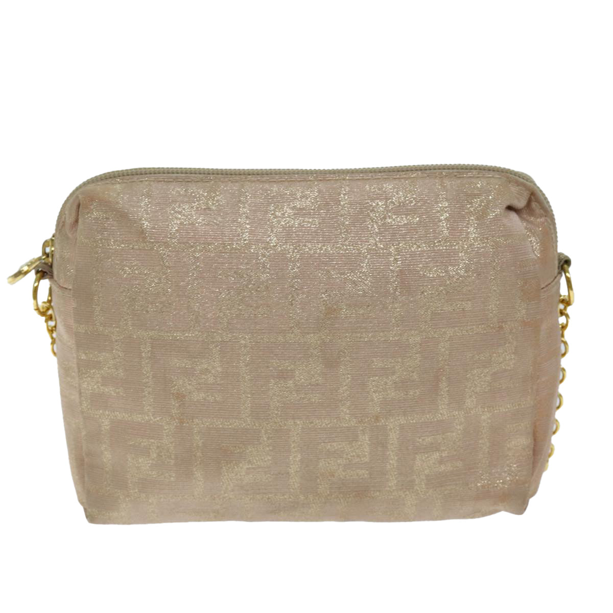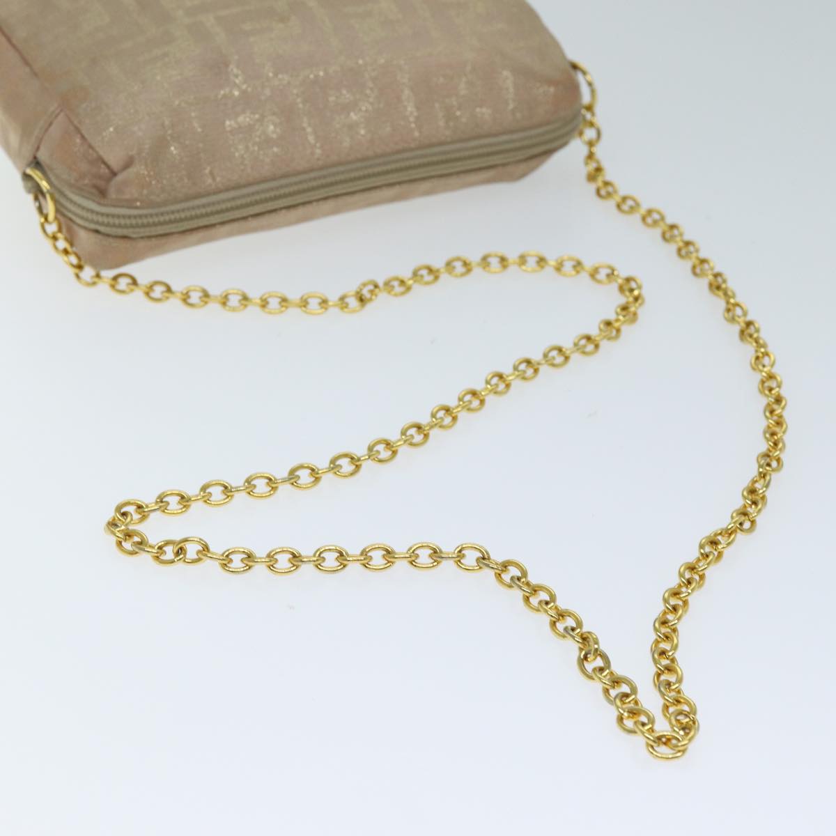 FENDI Chain Zucca Canvas Shoulder Bag Beige Auth 74583