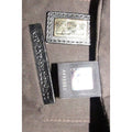 The black silky fabric logo lining on the interior is in excellent condition and there is one main compartment and one pocket. The bottom has semi-pleated corners on the bottom to expand, so the use of space in this purse allows it to hold a lot more than you'd think!