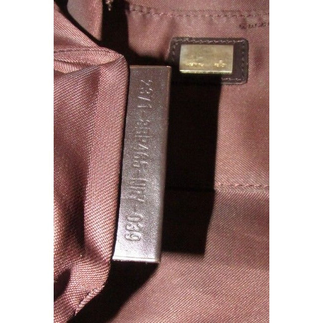 The brown silky fabric logo lining on the interior is in excellent condition and there is one main compartment and one pocket. The bottom has semi-pleated corners on the bottom to expand, so the use of space in this purse allows it to hold a lot more than you'd think!