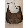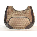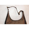 Fendi Chef Shoulder Purse Brown Zucchino Or Small F Logo Print Light Brown On Canvas And Brown Leath