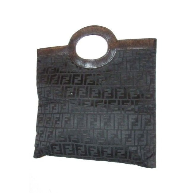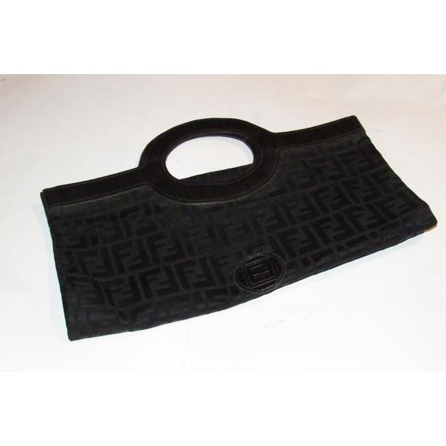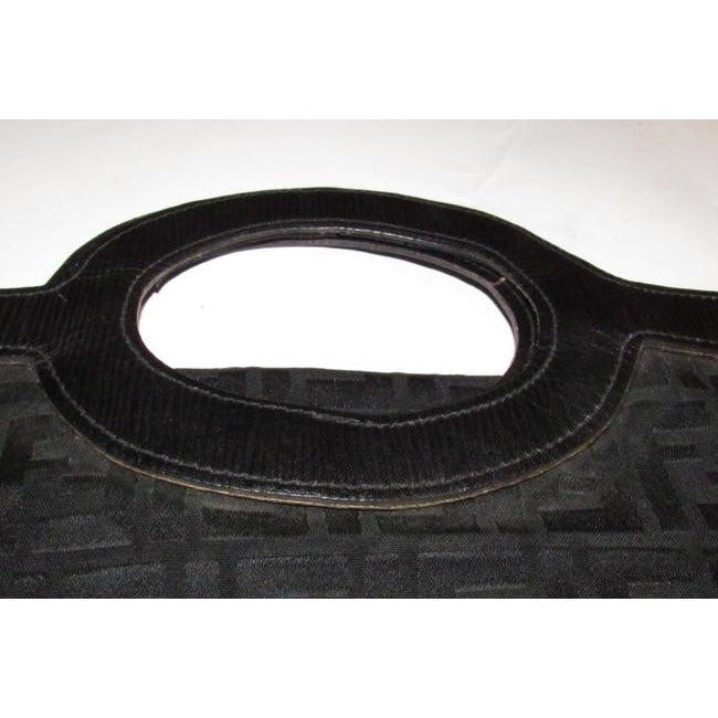 Fendi Clutch Canvasleather Top Handle Runawayporthole Toteclutch Black Zucca Print Leather And Canva