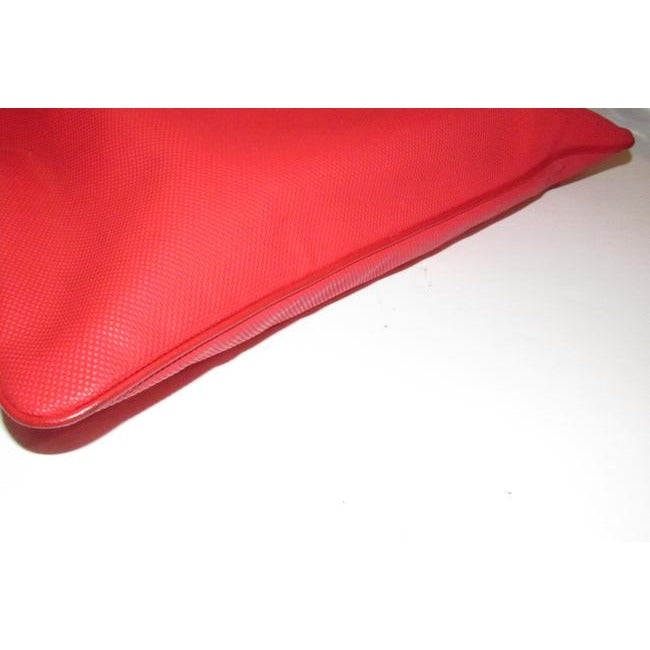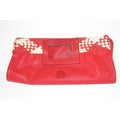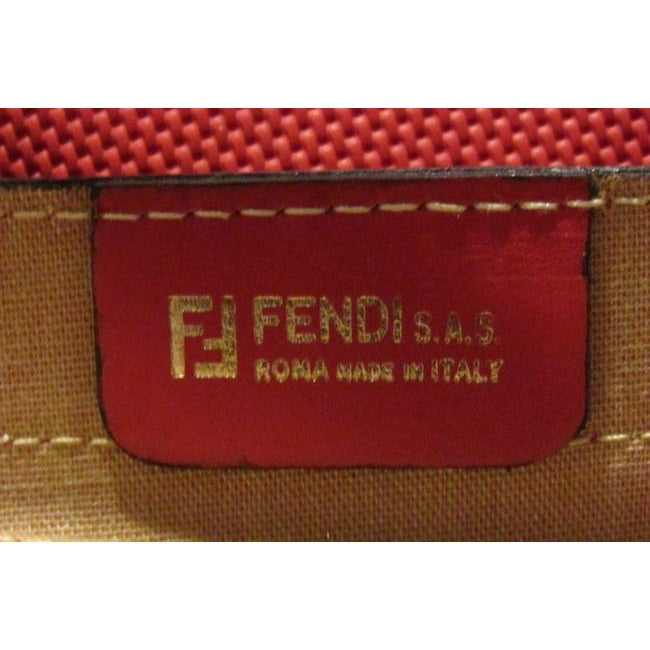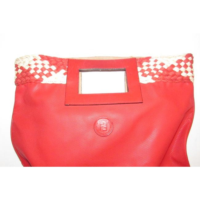 Fendi Clutch Textured Porthole Runway Trim Tomato Red Leatherredivory Woven Fabric Tote