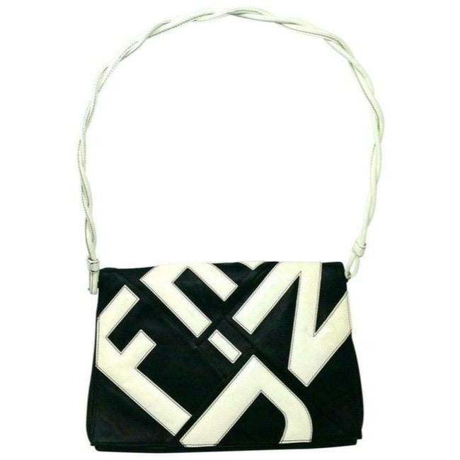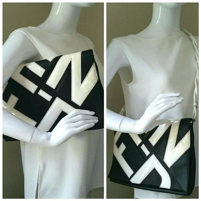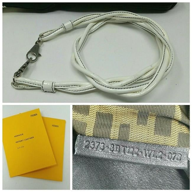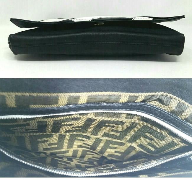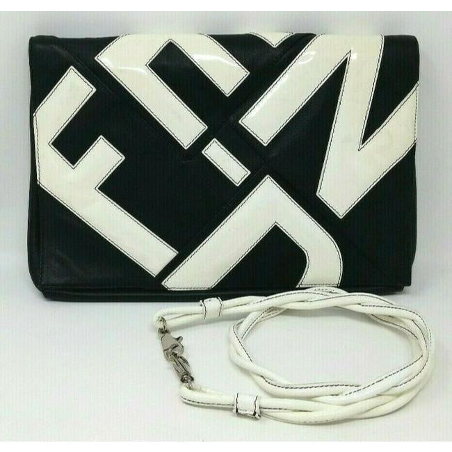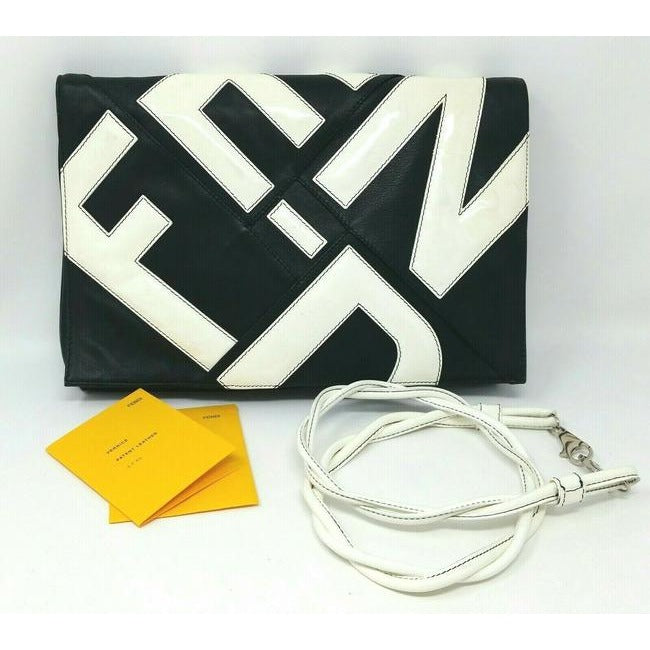 Fendi Clutch W Two Way Envelope Bagclutch Logo Black Leatherwhite Patent Shoulder Bag