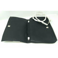 It is made from a supple black lambskin leather that is has a unique, geometric design of white patent leather letters on the front that spell Fendi! The removable strap is made of a twisted, white, patent leather with a snap on both sides to fasten it.