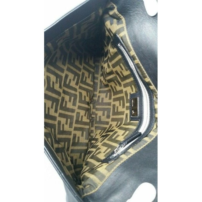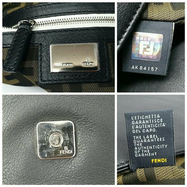Inside, the layout is very basic. There is one, large compartment with one interior zip pocket. The inside is very clean in brown Zucca print fabric. It has a hologram tag with a serial# as well as a leather embossed tag with a serial #- see pictures. It will come with its Fendi card and its dust bag, too!