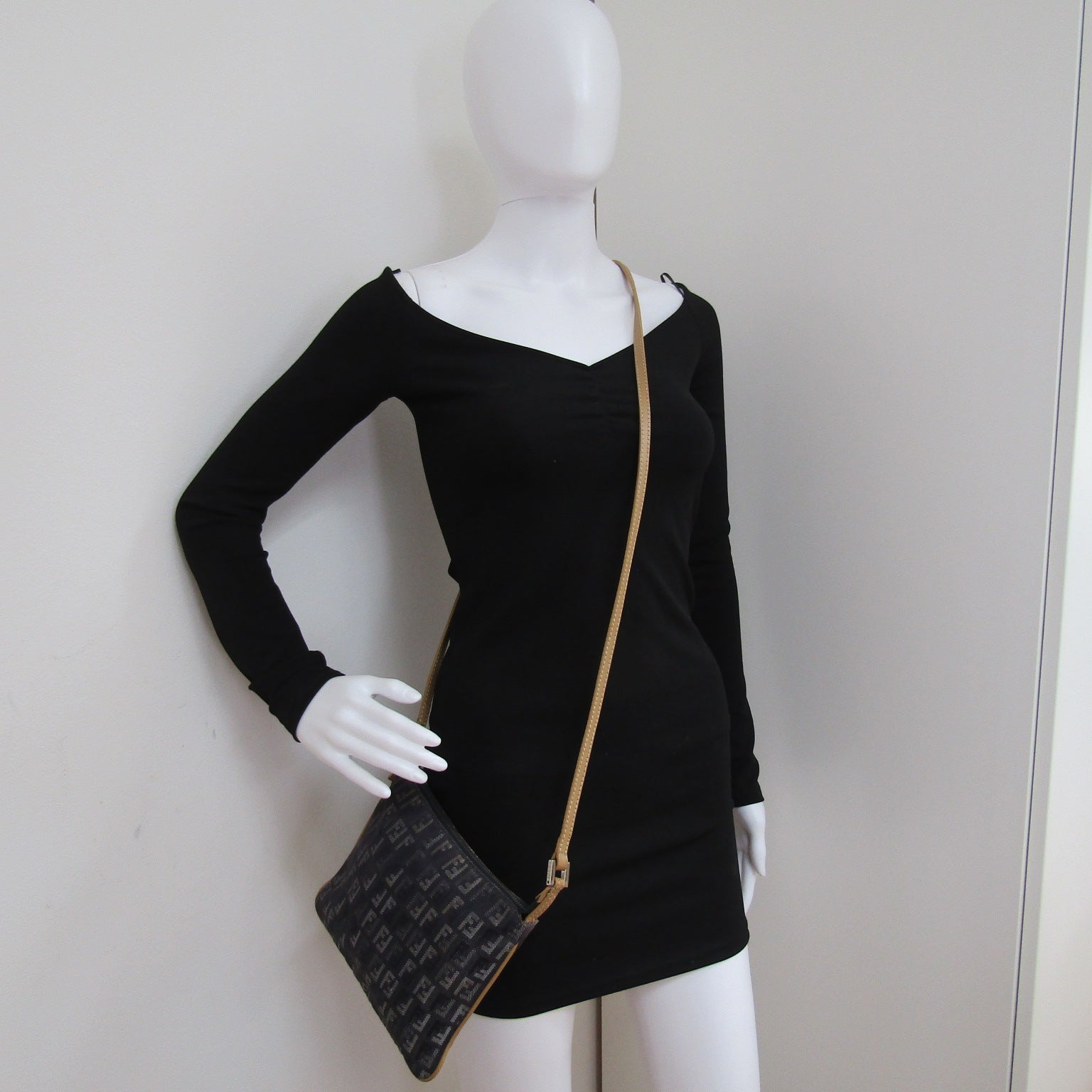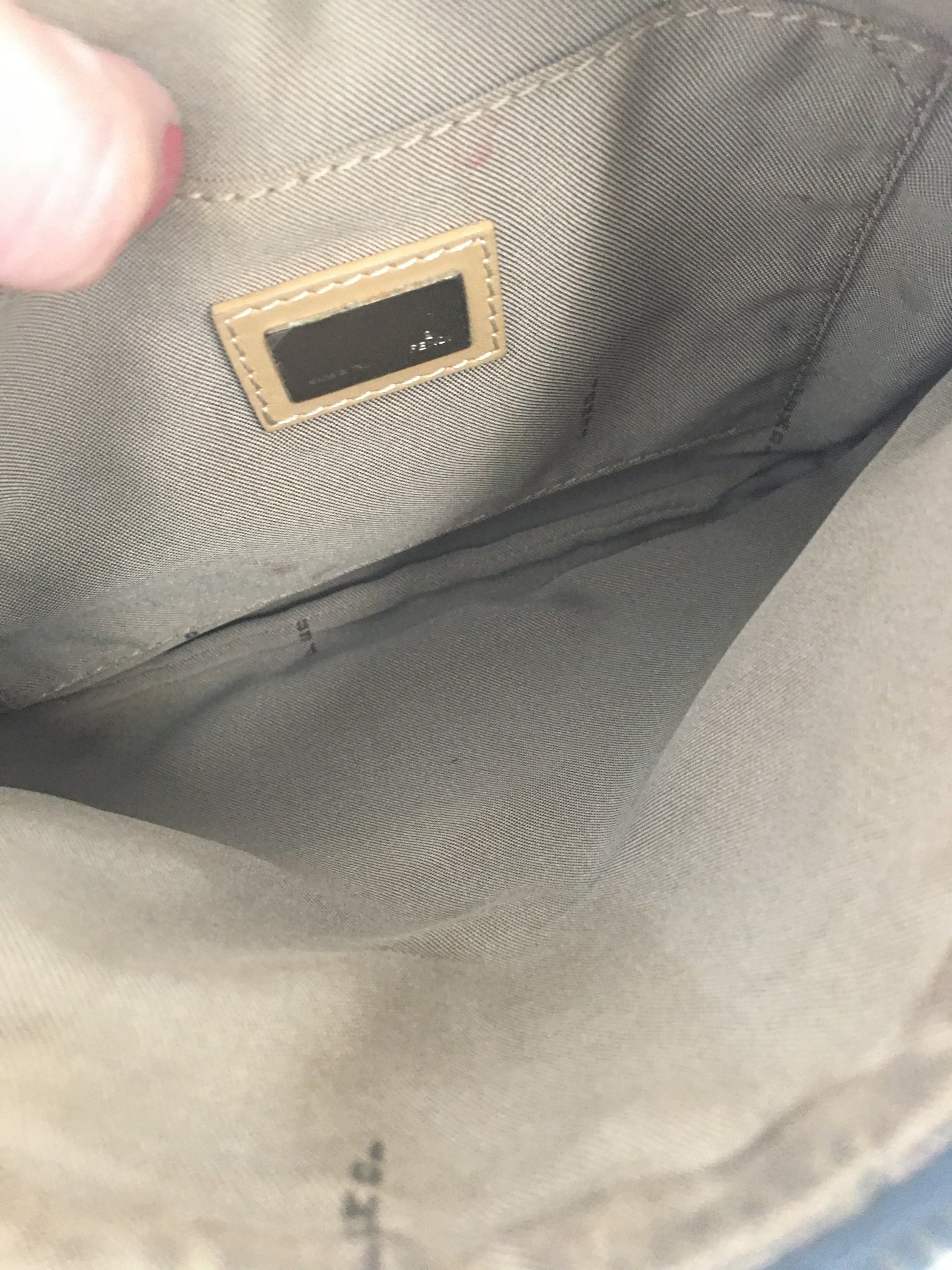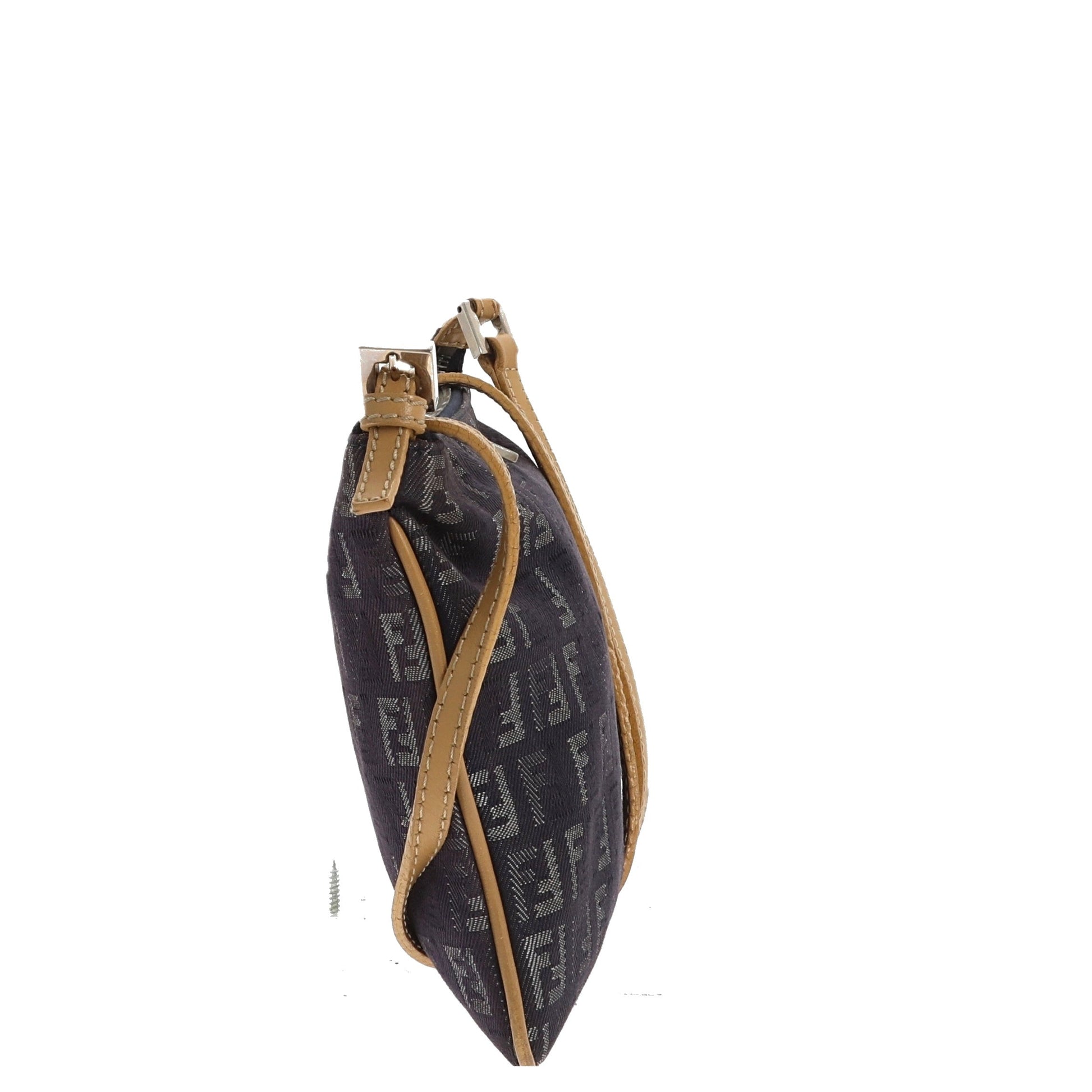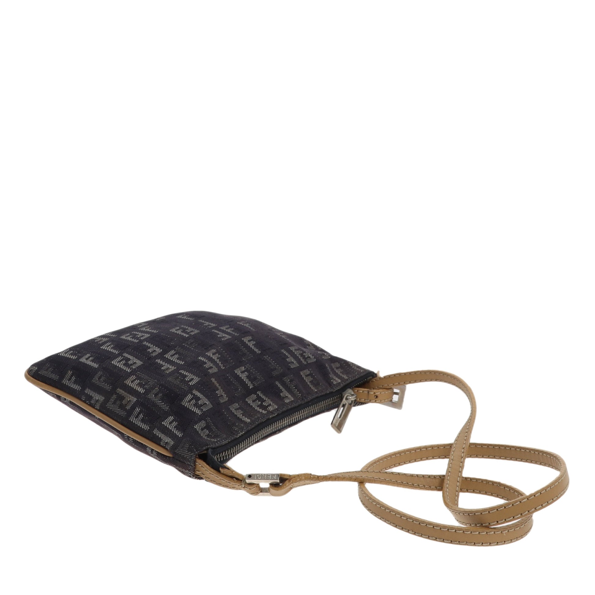 Fendi Zucchino Crossbody bag In blue denim fabric with beige leather details.