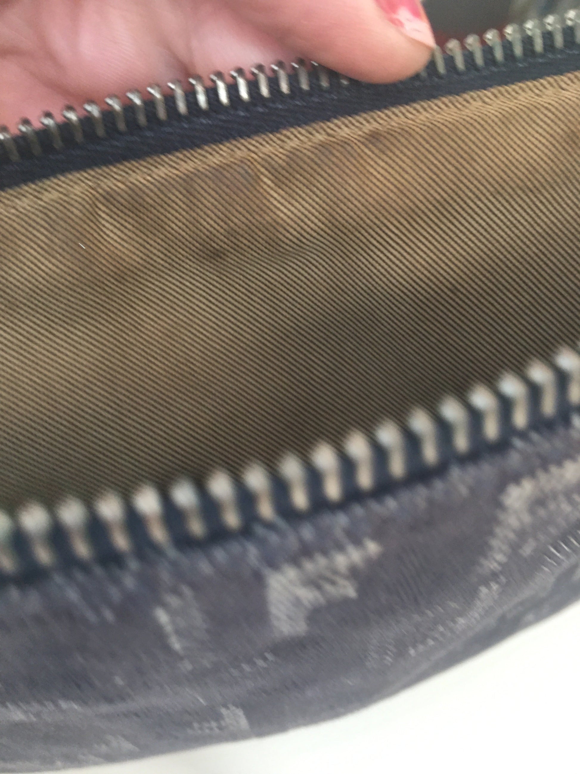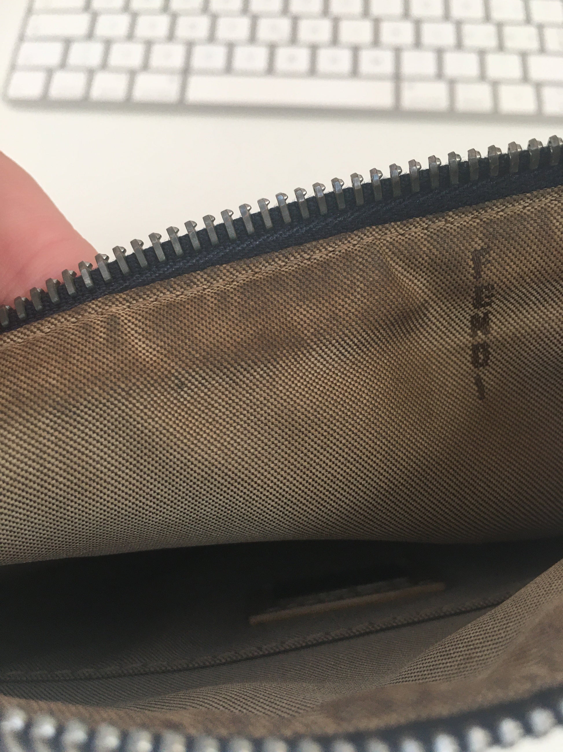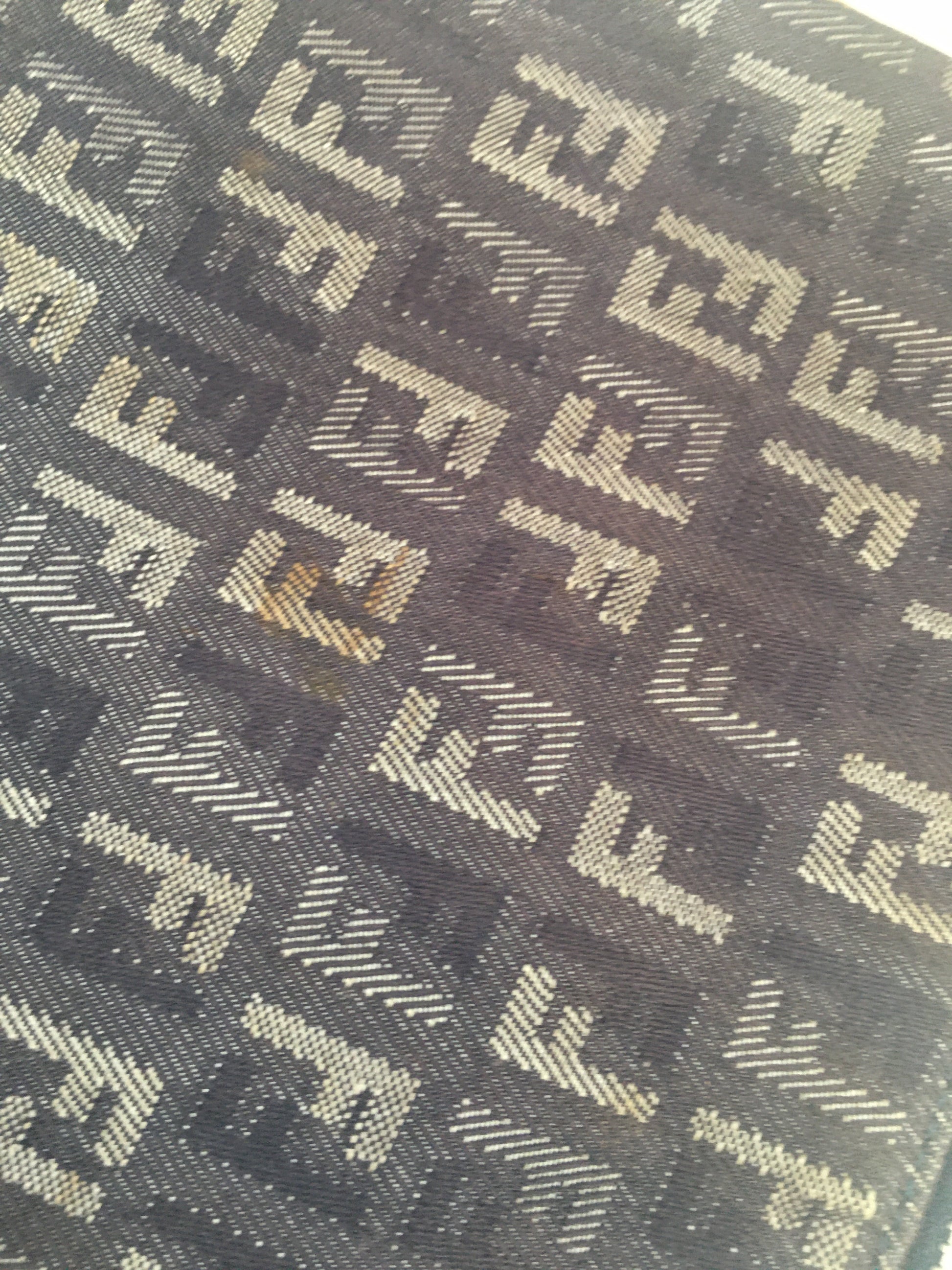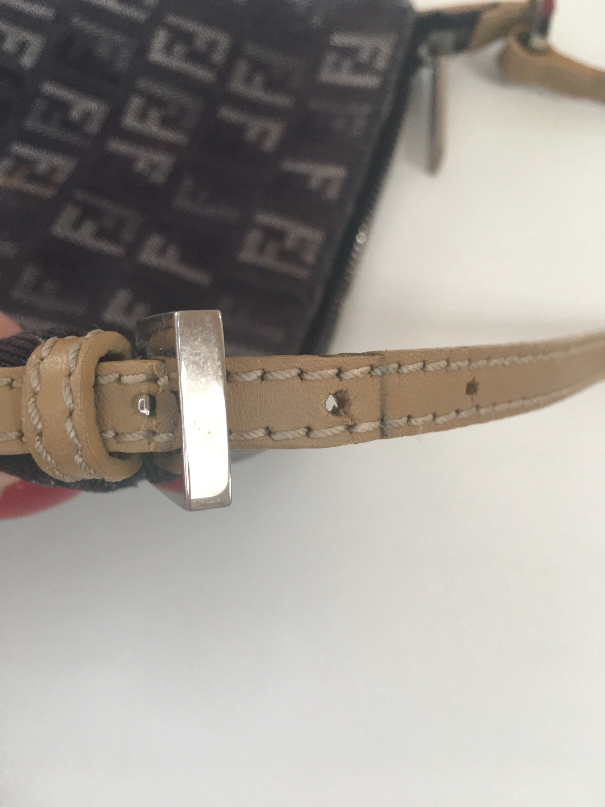 Fendi Zucchino Crossbody bag In blue denim fabric with beige leather details.