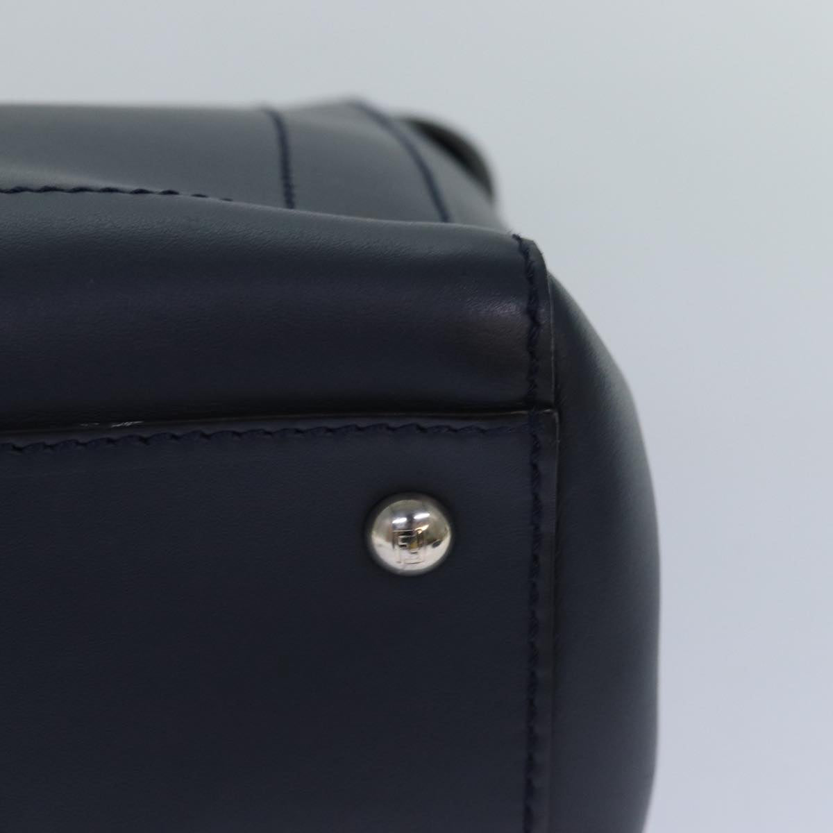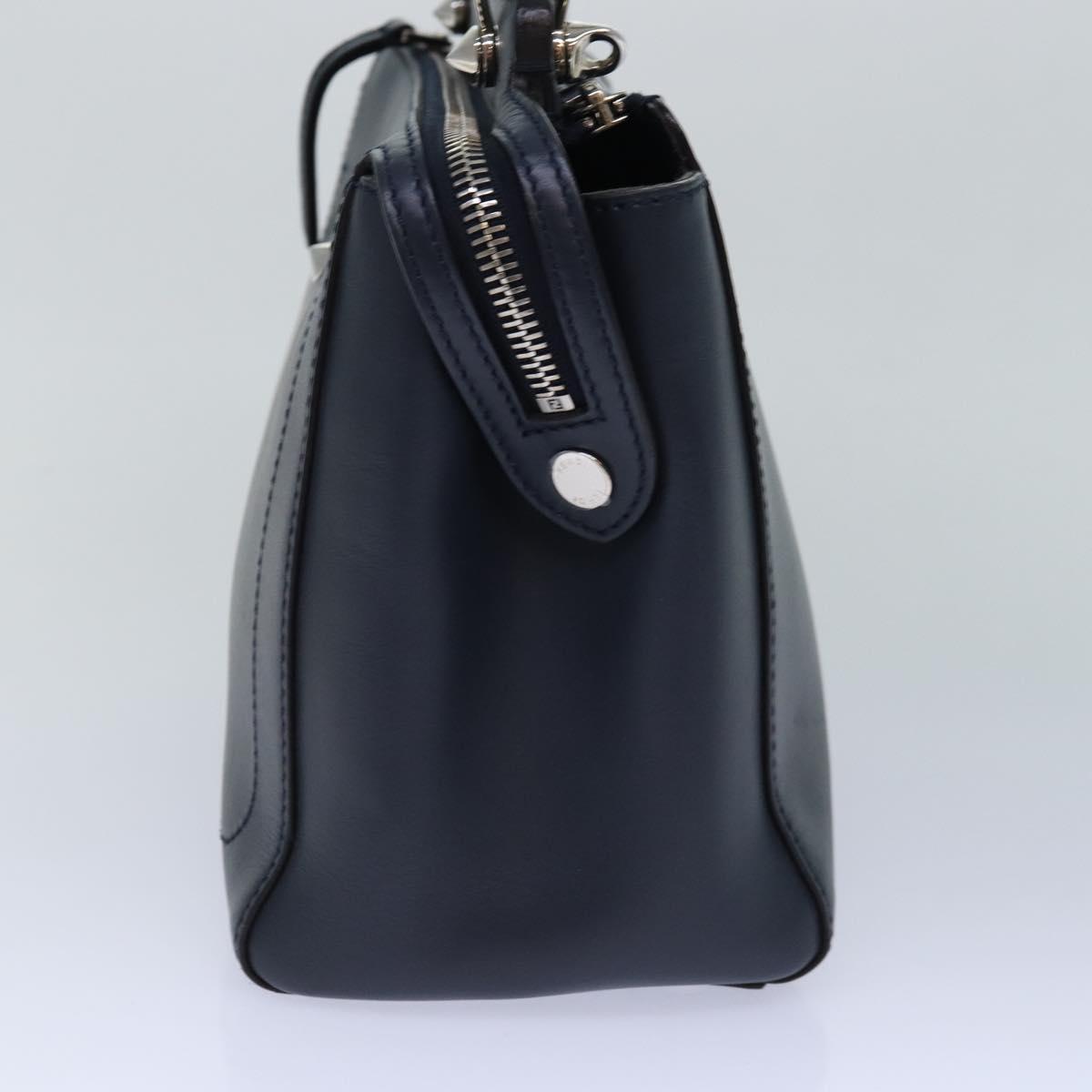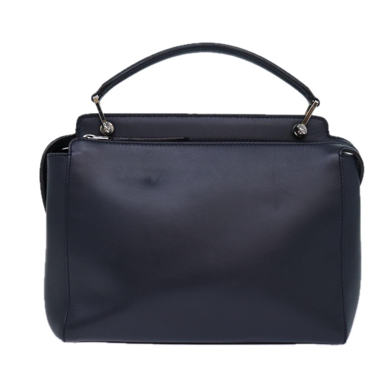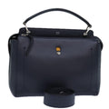 FENDI Dot Com Hand Bag Leather 2way Navy Auth ar12222