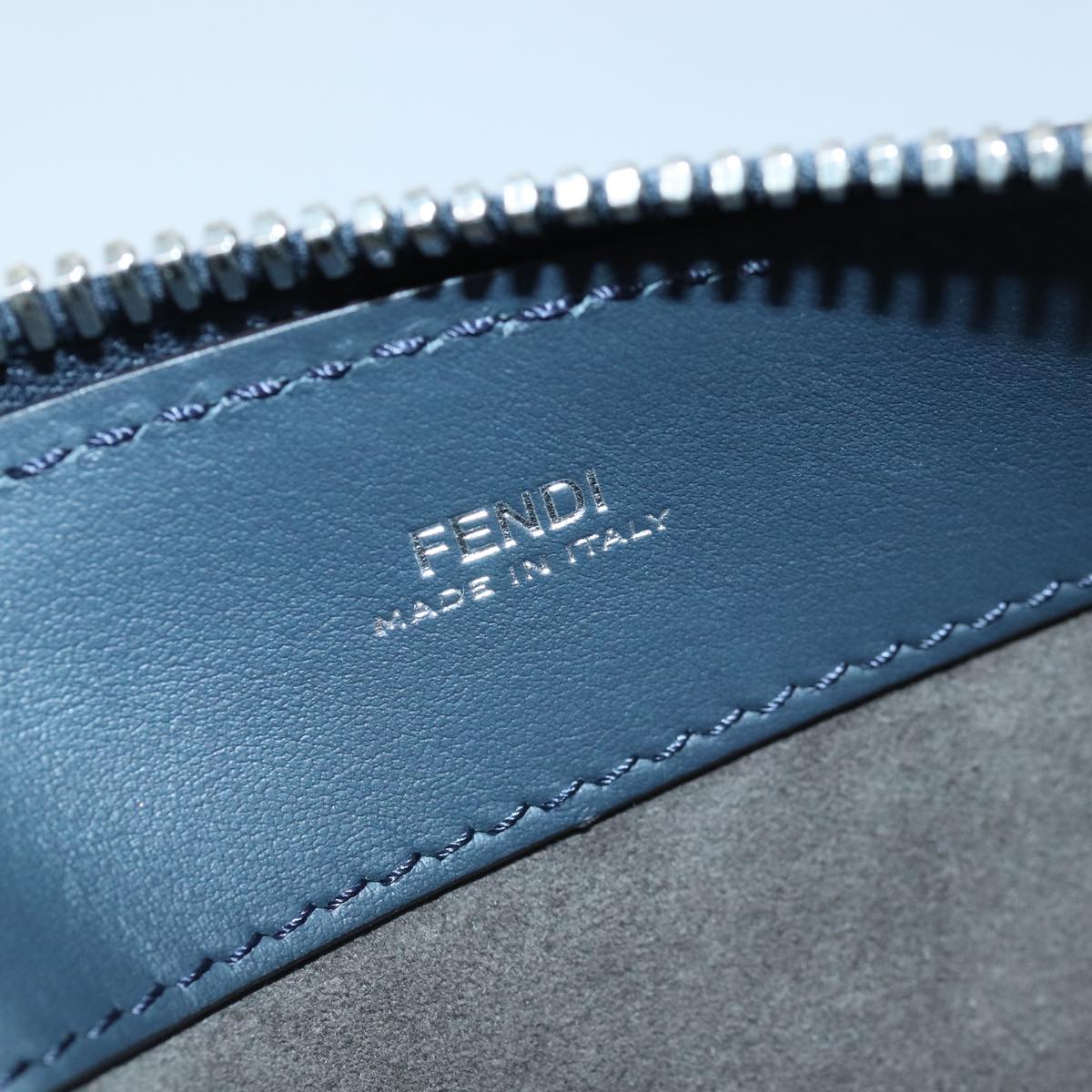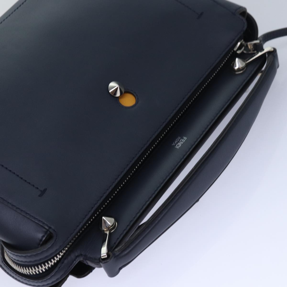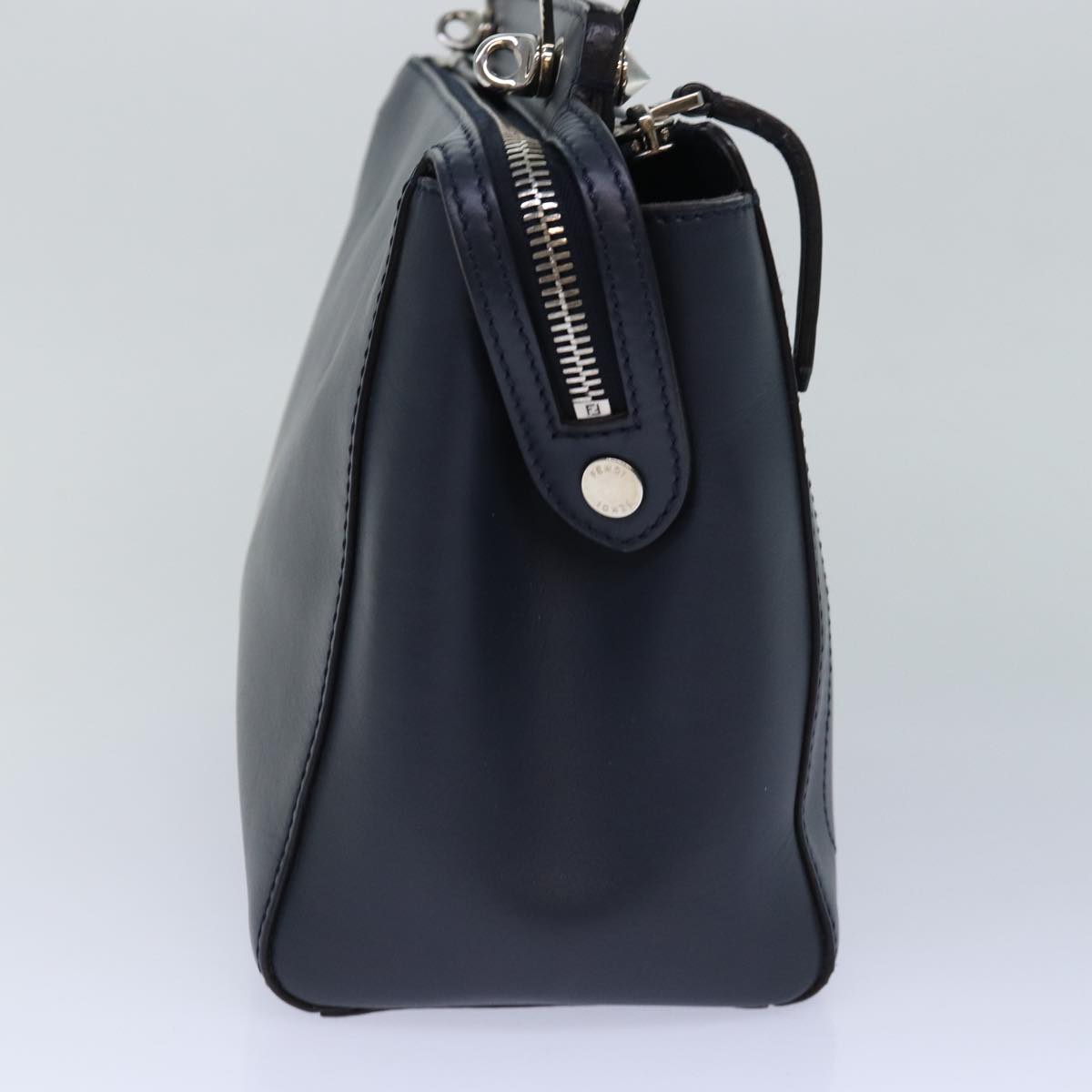FENDI Dot Com Hand Bag Leather 2way Navy Auth ar12222