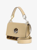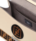 This cream and brown Fendi leather shoulder bag is all you need to perk up your day, but it will take a little effort...by clicking that 'add to basket' button. For in the words of the wise Dalai Lama, 'Happiness is not something ready made. It comes from your own actions'. Crafted in Italy from a soft leather, this style has a gusseted silhouette, a palladium-tone new Fendi logo on the front flap and detachable shoulder strap. It features a woven panel under the flap that has a shaved texture and outlines the iconic FF pattern in shades of brown and black. Each accessory is complete with a detachable matching top handle with gold and silver-tone Fendi logo hardware and lobster claw hook