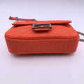 Gorgeous Fendi 'Baguette Chain' Bag In Orange Technical Mesh Canvas With Embossed Ff Monogram Pattern.
