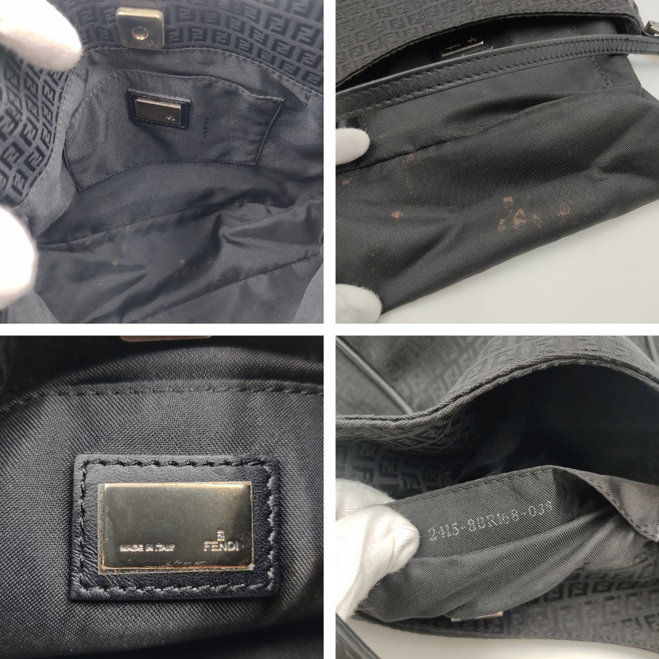 Fendi handbag in black Zucchino canvas.Leather handle and profiles.Steel-colored metallic finishes.Nylon interior with a small open pocket.The external conditions are excellent.The inner lining has some small enamel stains.DIMENSIONS: L: 23 cm - H: 20 cm - W: 7 cm - Handle 21 cmAll our items are selected, carefully sanitized and ated by our experts.CODE: 5512B144BRAND: FendiMADE IN: ItalyITY CODE: 24158BR168038Black colourMATERIAL: CanvasCONDITION: Good