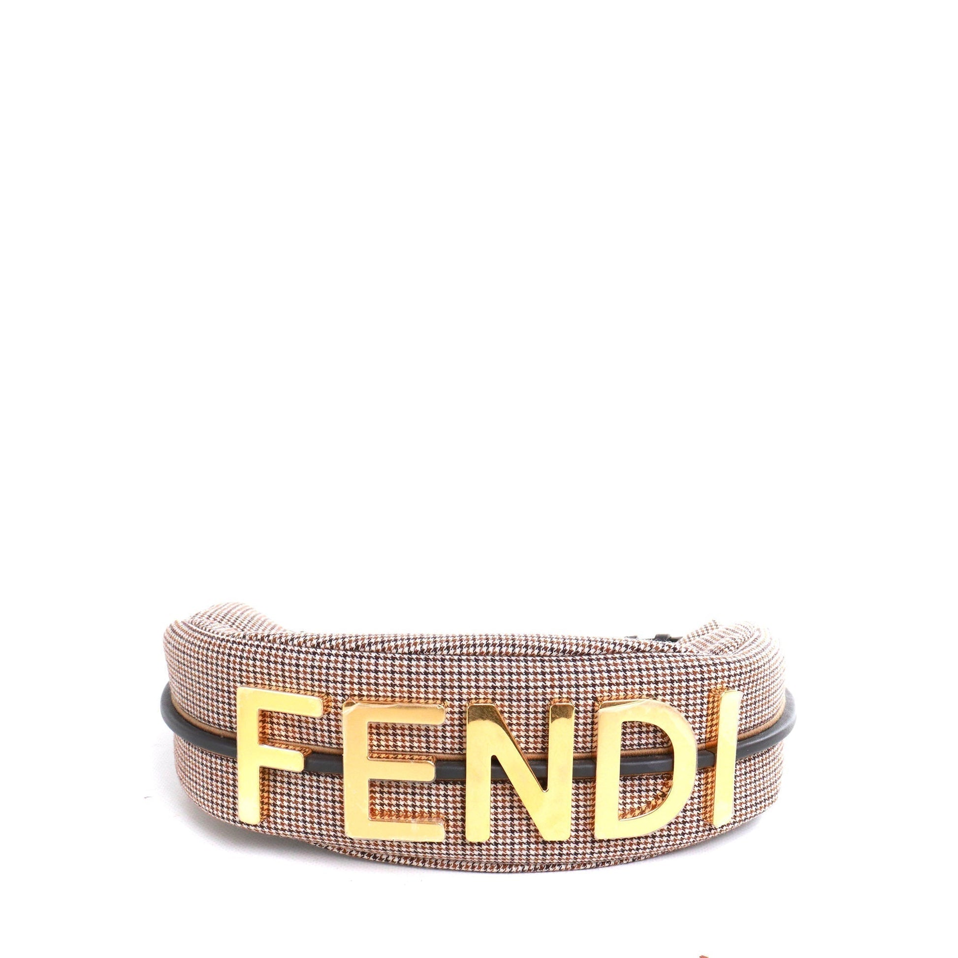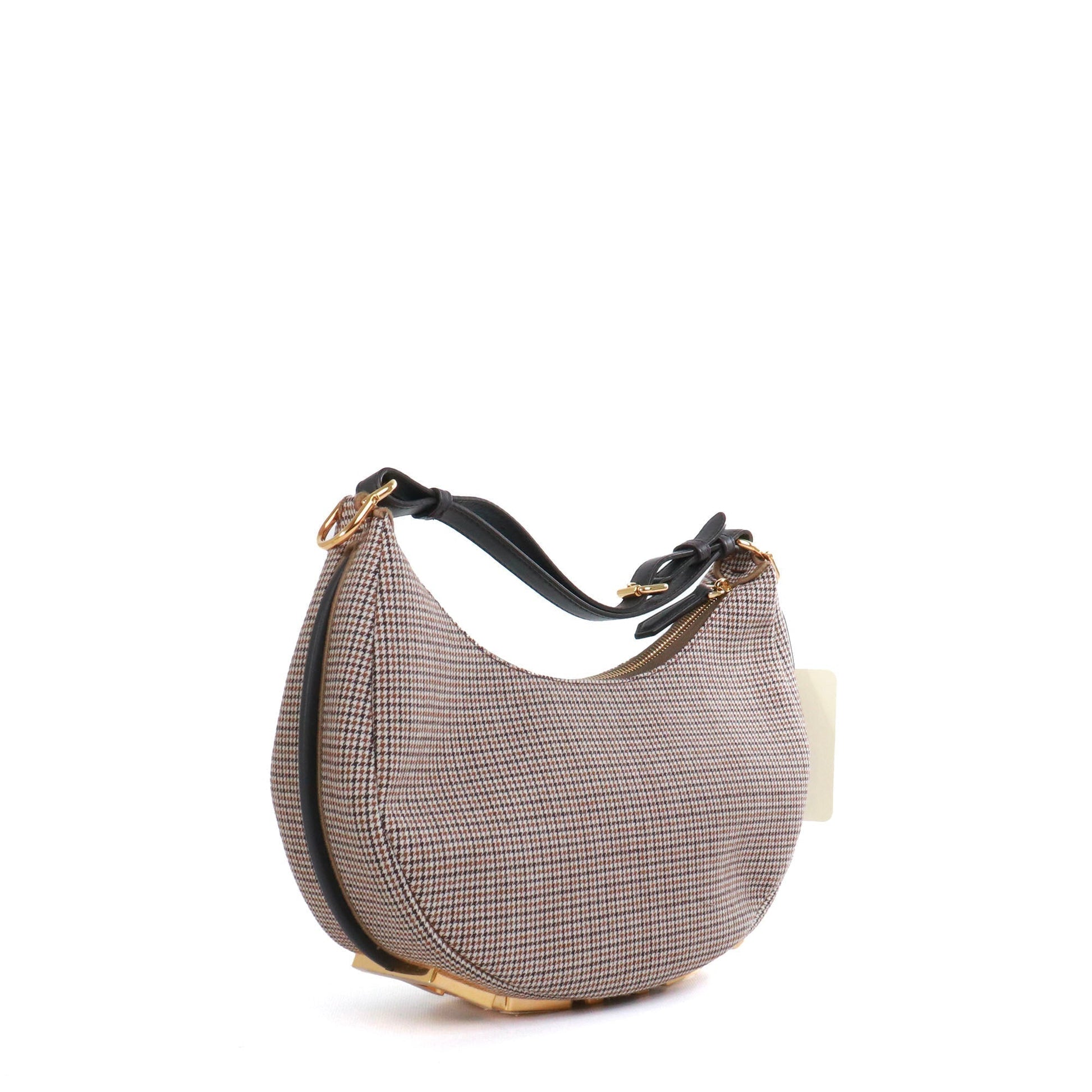 Model: Fendigraphy Material: Houndstooth canvas Brown color Golden jewelry Adjustable handle Dimensions: 30cm x 17cm x 10cm Zip opening From the VPs
