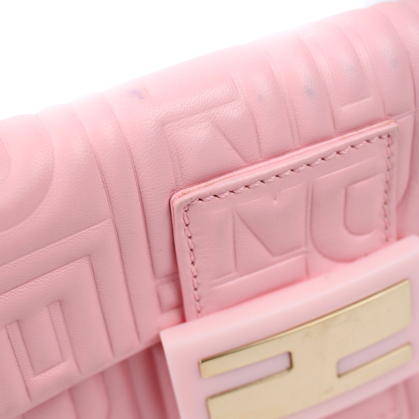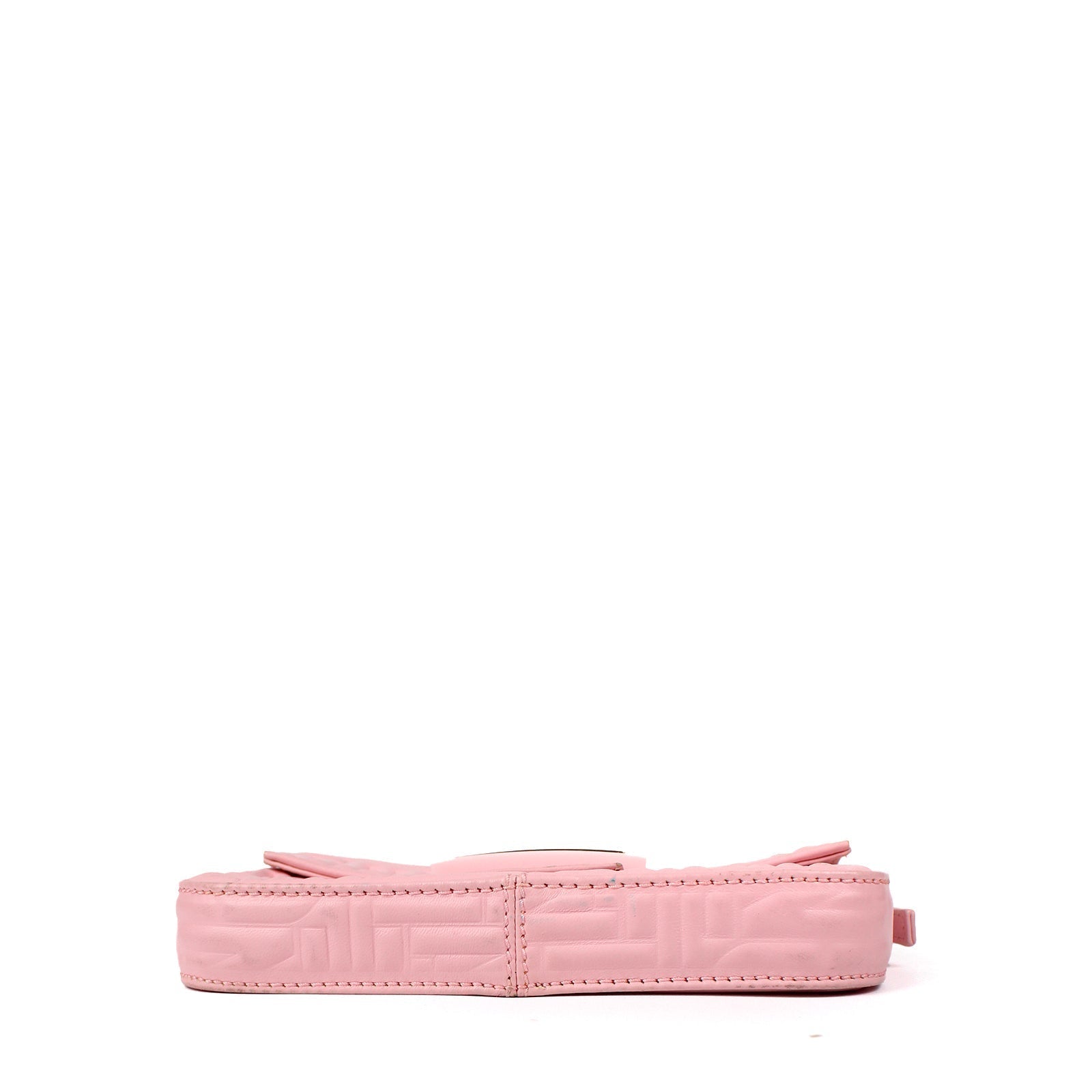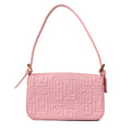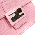 Measurements (CM): Mama mini vintage baguette of the Fendi house. Vintage monogram embossed Fendi all over the bag. It is by hand with its small leather handle. Pale pink smooth leather Golden jewelry store Zipped interior pocket Interior in colored canvas Dimensions 20x10x4cm Leather blackened in some places