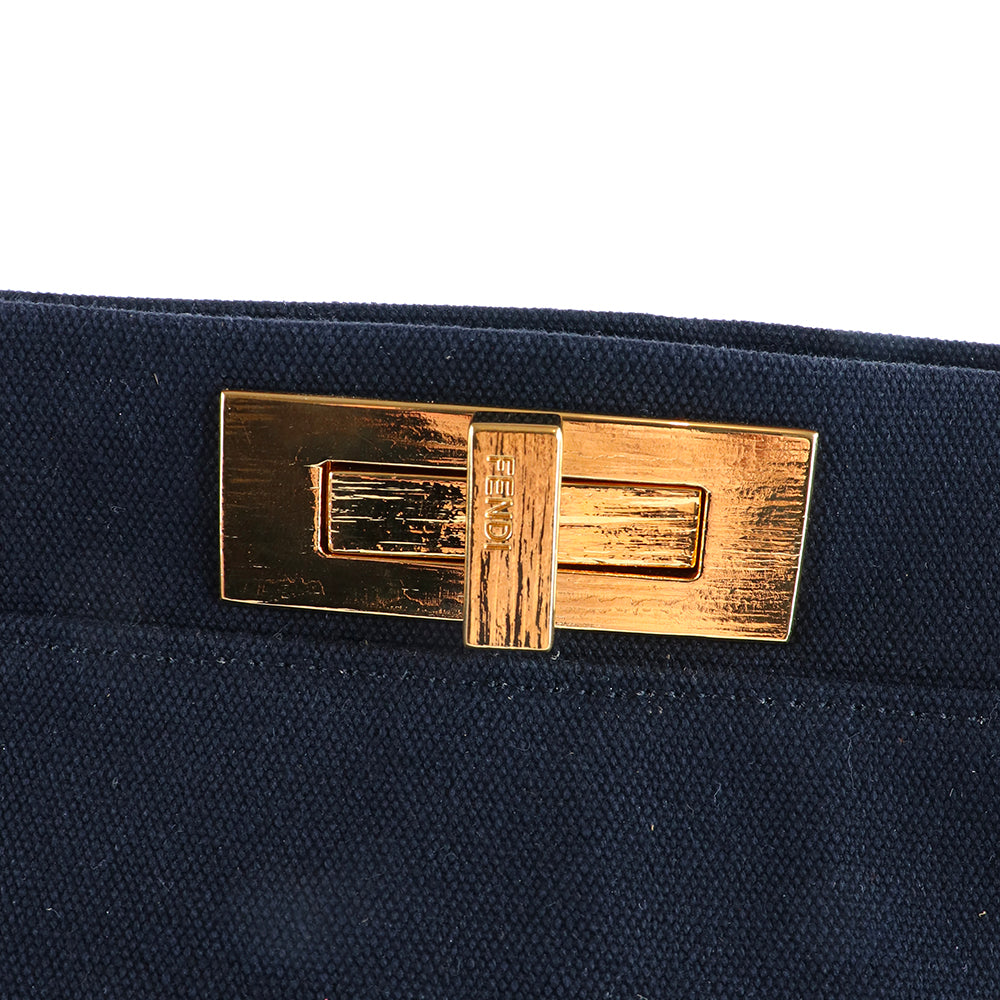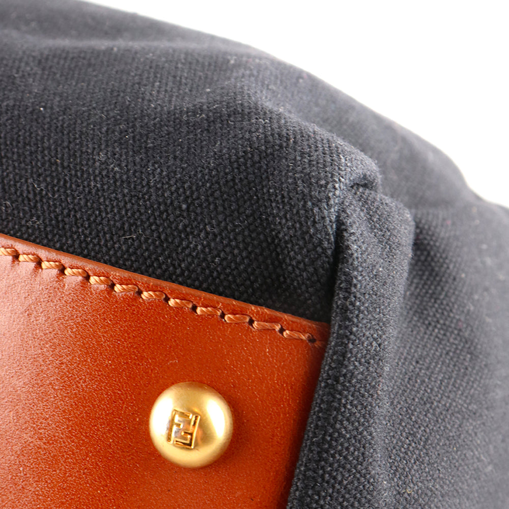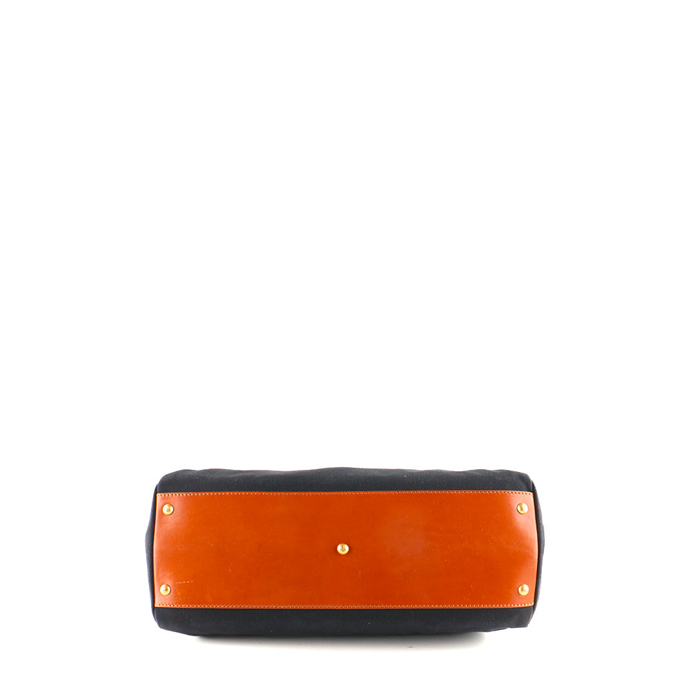Model: PEEKABOO Material: Canvas | Leather Black color Golden jewelry store Removable short strap (65cm) Dimensions: 40cm x 32cm x 16cm Opening by LOCK 2 large compartments Natural leather handle Internal zipped pocket Some minimal brands on leather