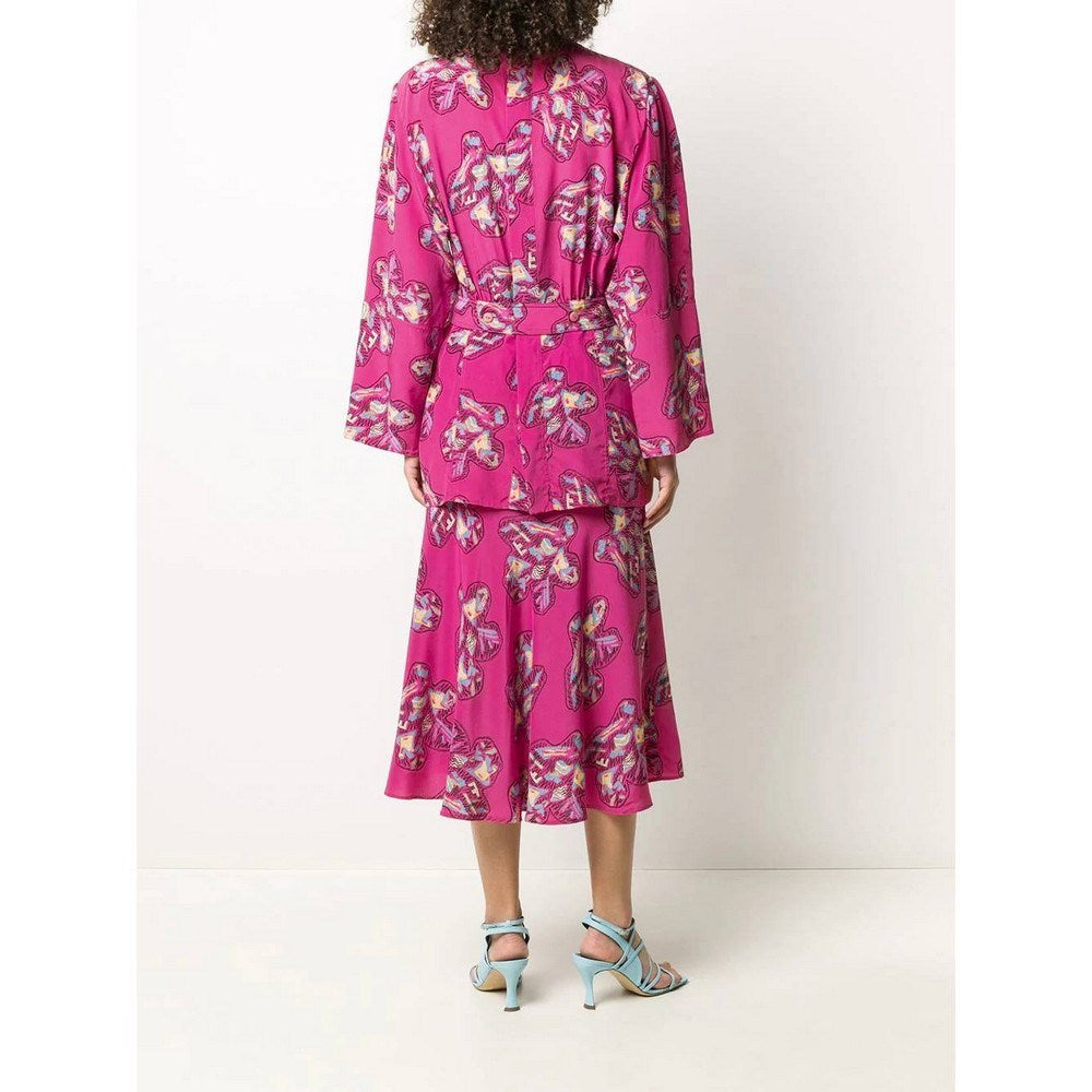 Fendi fuchsia silk with floral pattern suit.