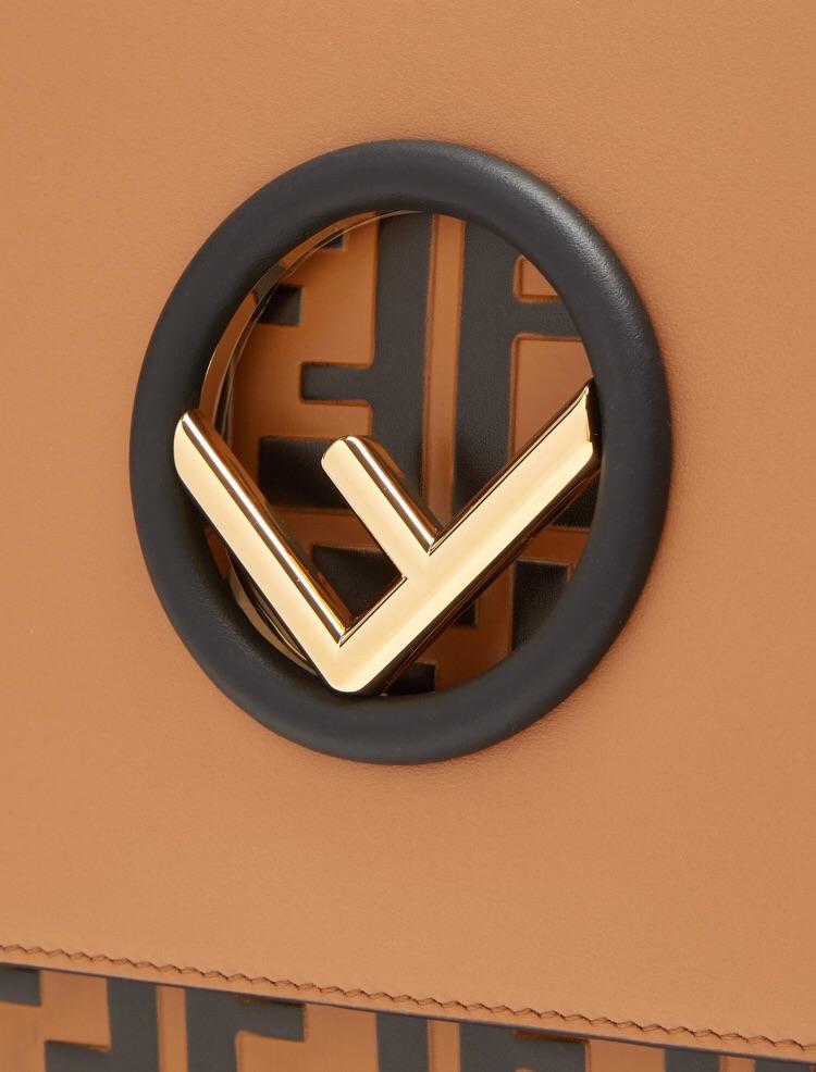 Posh structured shoulder bag with peekaboo logo print. Top handle. Removable shoulder strap. Magnetic flap closure. Goldtone hardware. Interior slip pocket