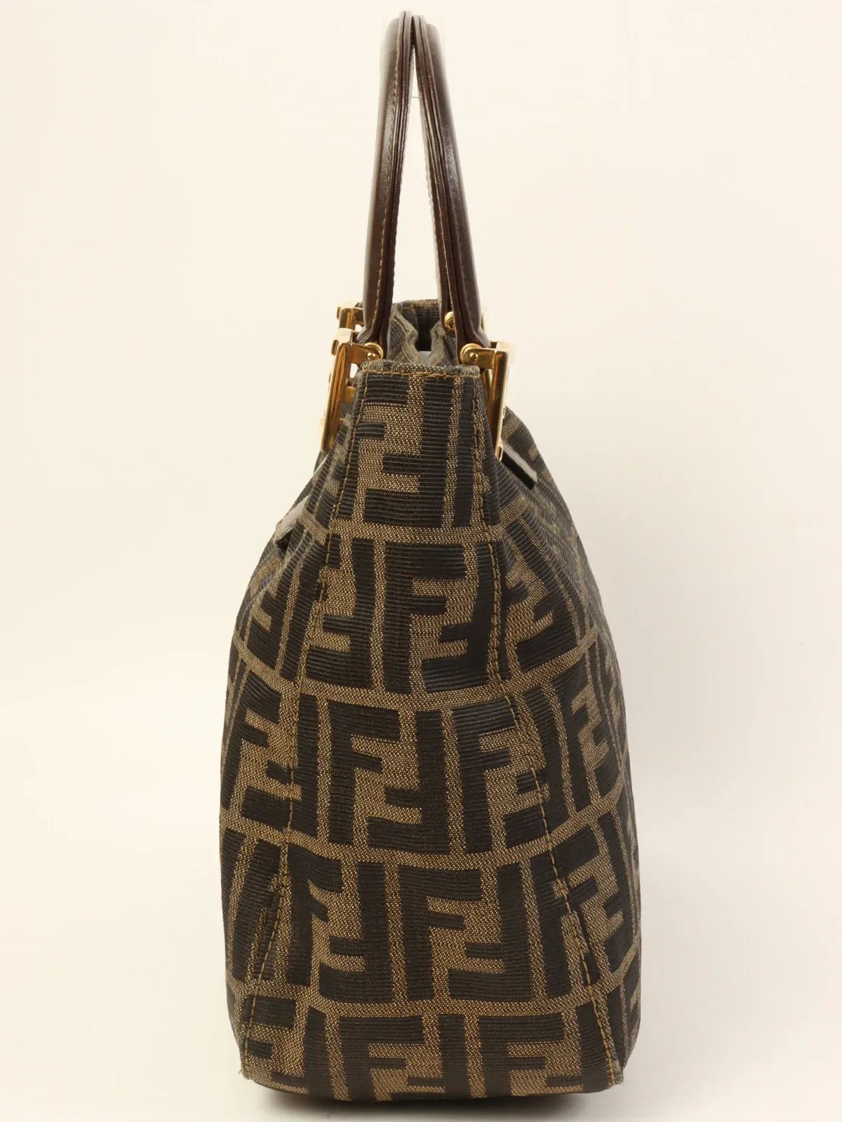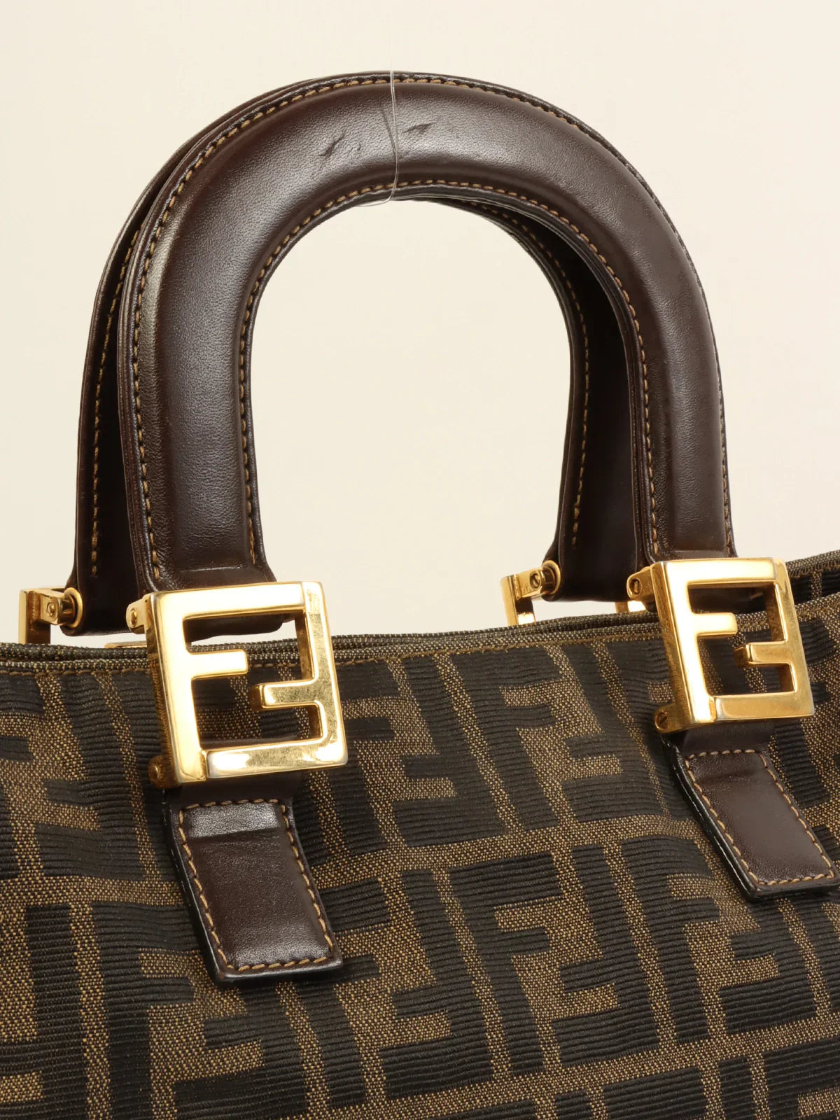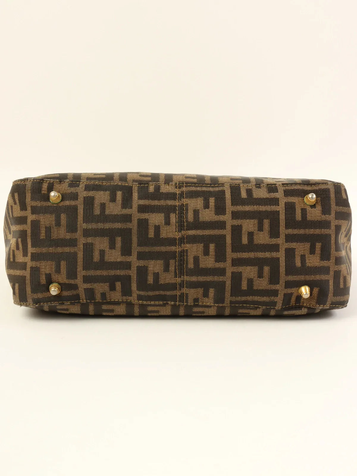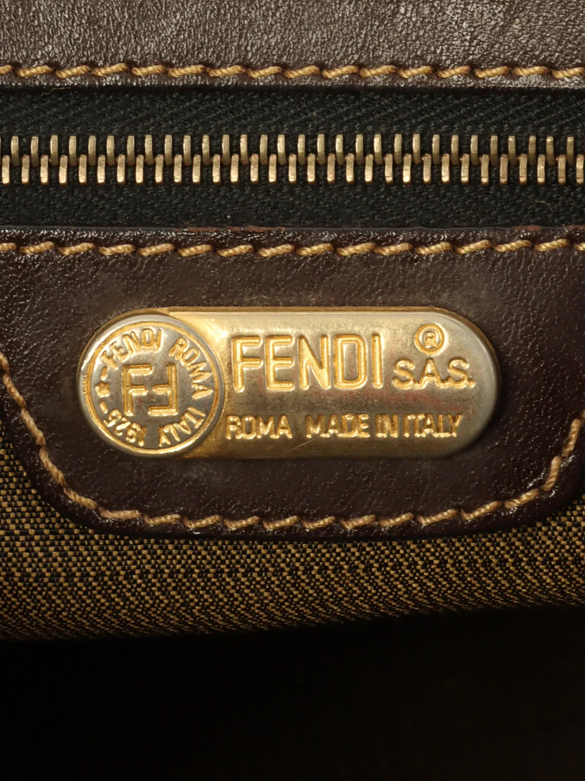 FENDI Ff Pattern Logo Plate Top Handle Bag Brown