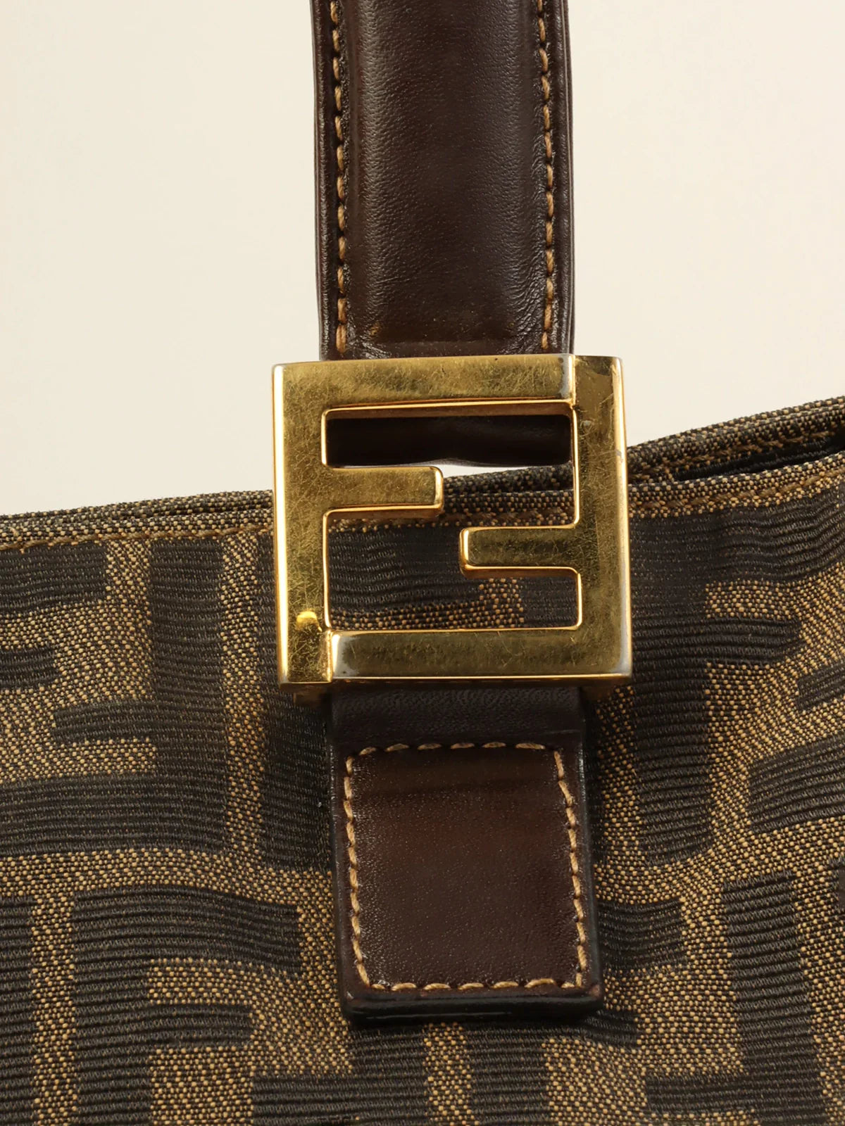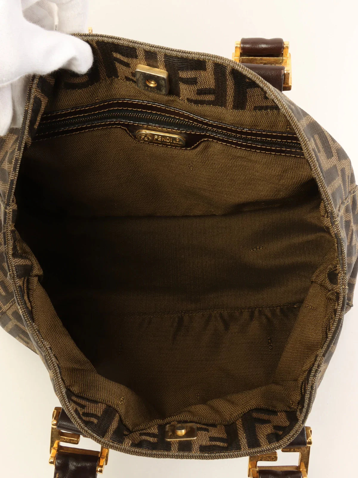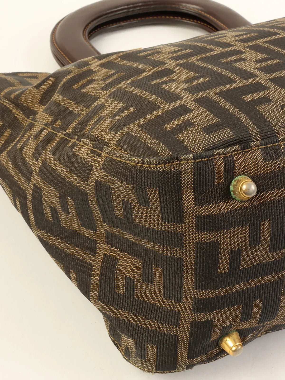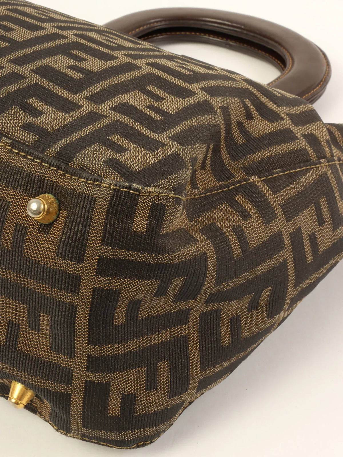 FENDI Ff Pattern Logo Plate Top Handle Bag Brown