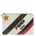 FENDI FILA Collaboration Clutch Bag Leather Beige Gold Auth 87366