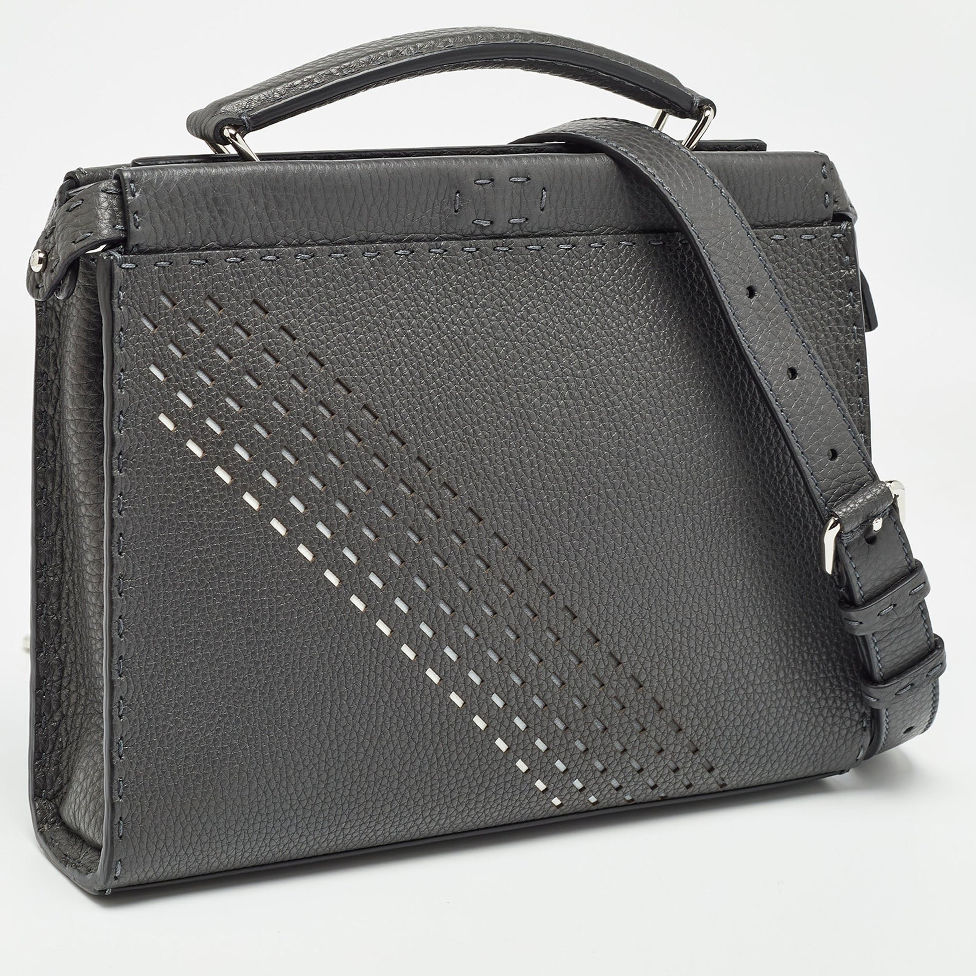 FENDI Grey Selleria Leather Mini Fit Top Handle Bag