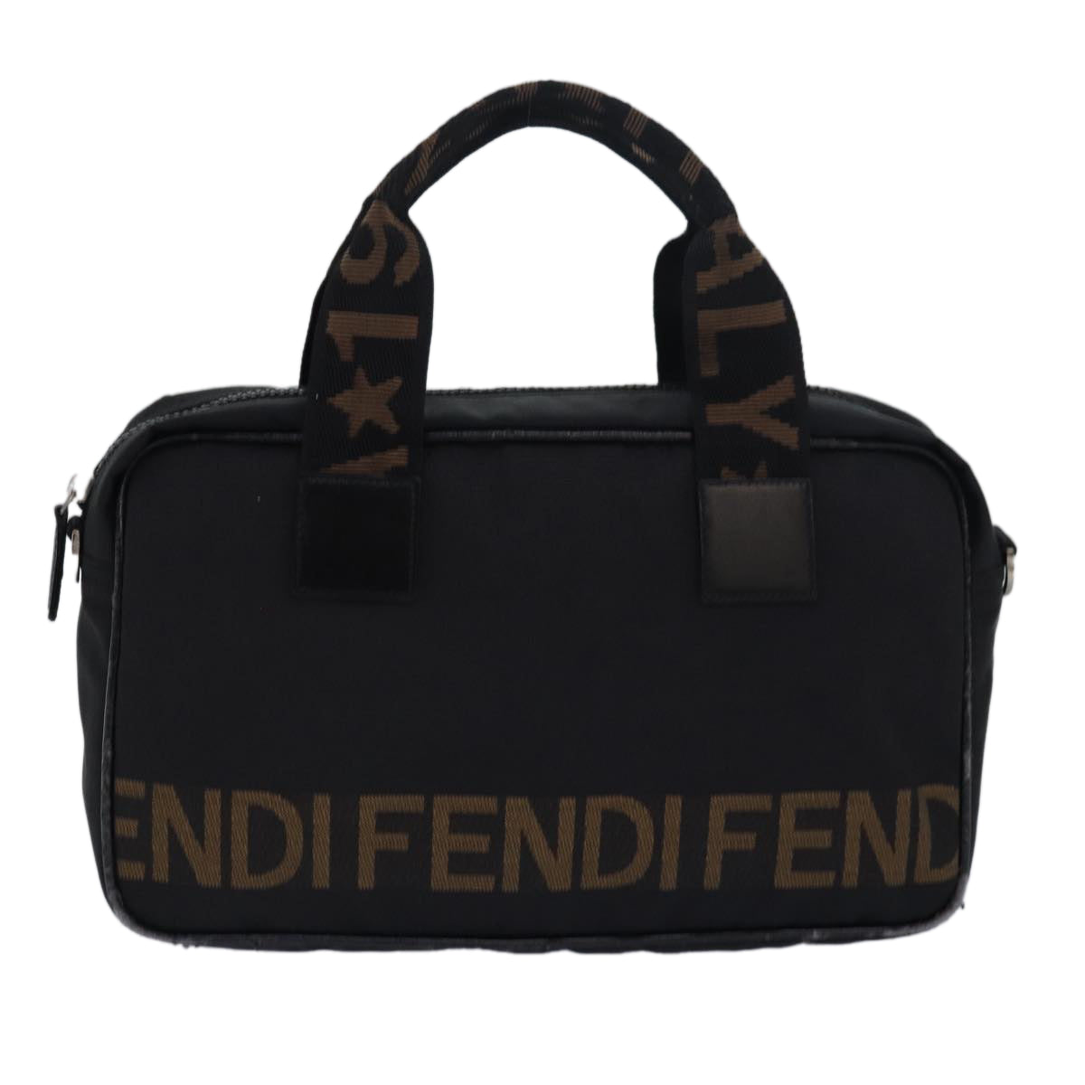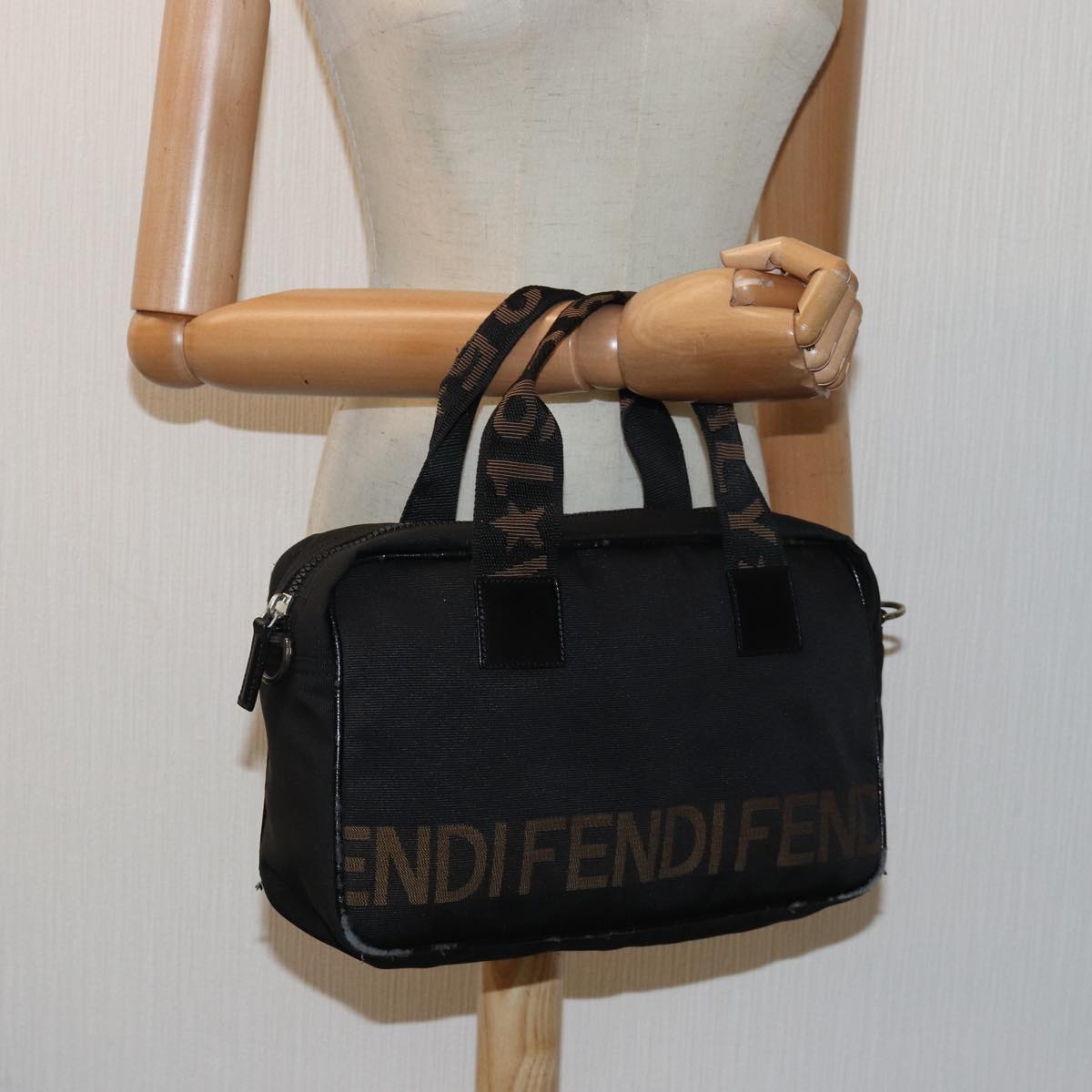 FENDI Hand Bag Canvas Black Brown Auth bs15716