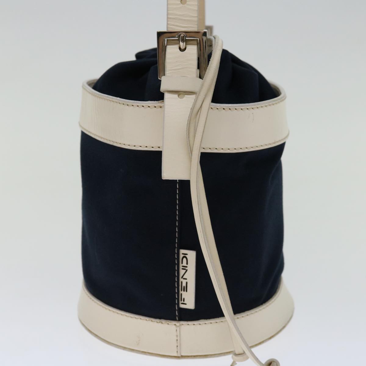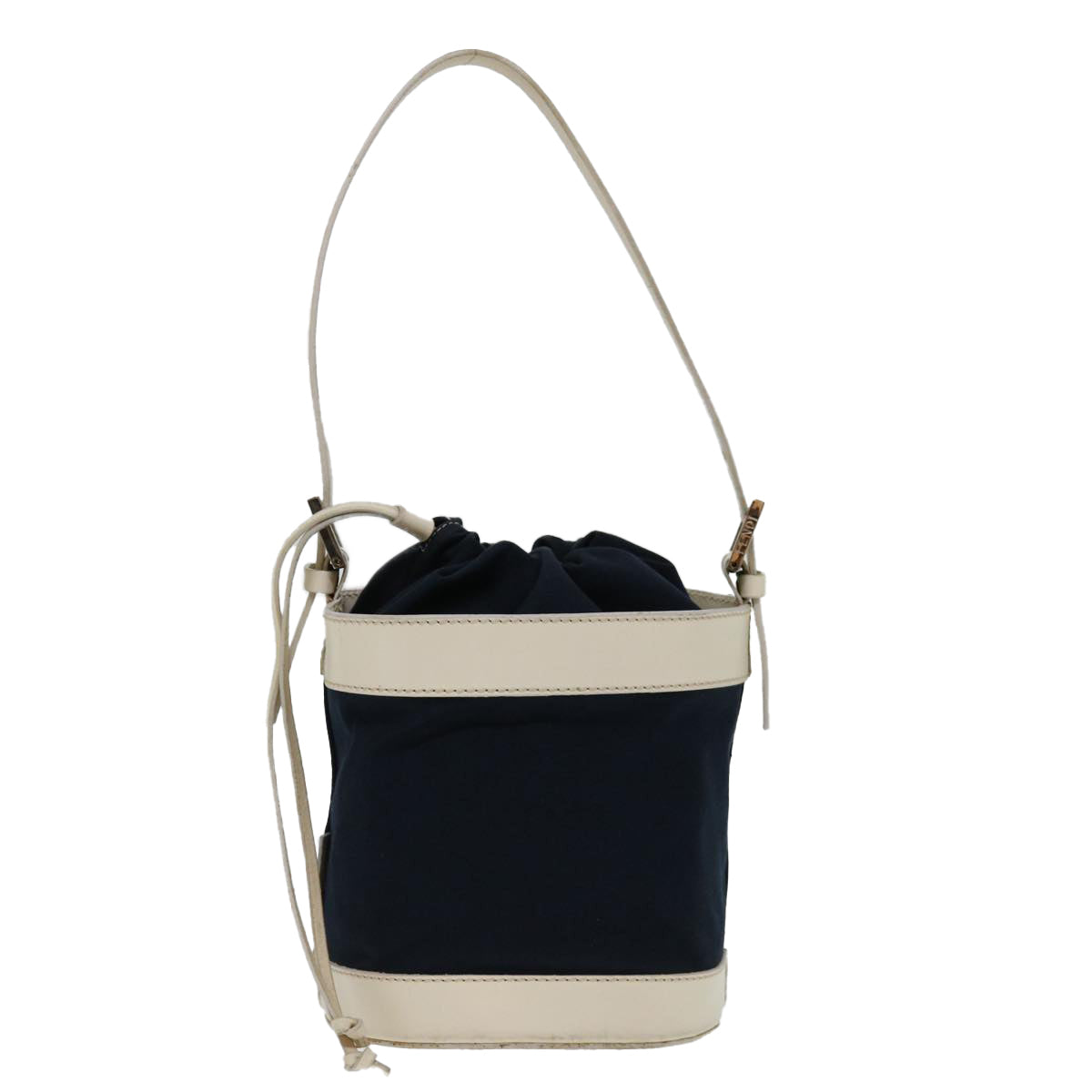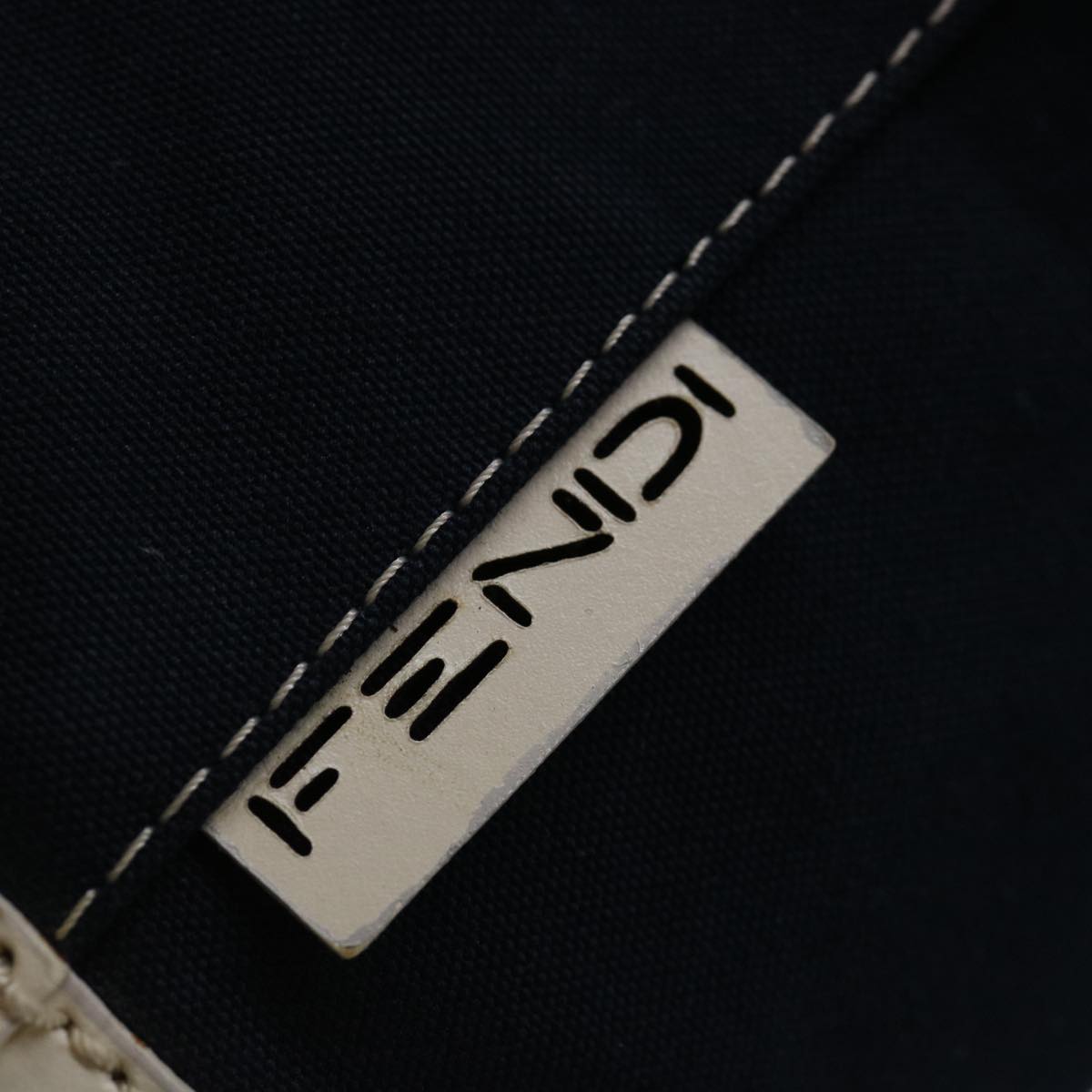 FENDI Hand Bag Canvas Navy White Auth hk1190