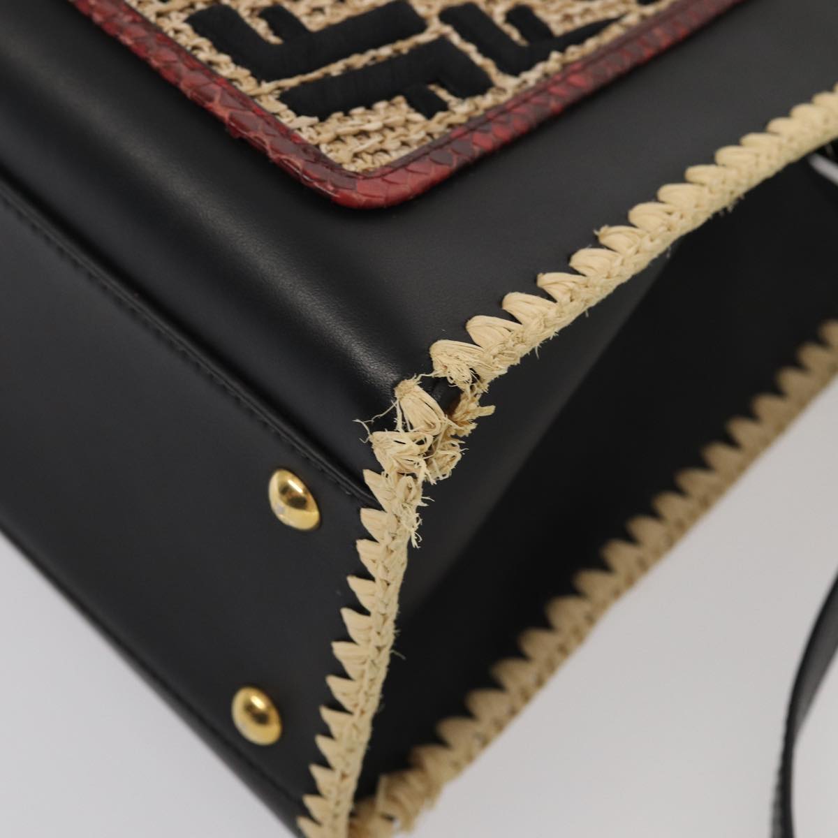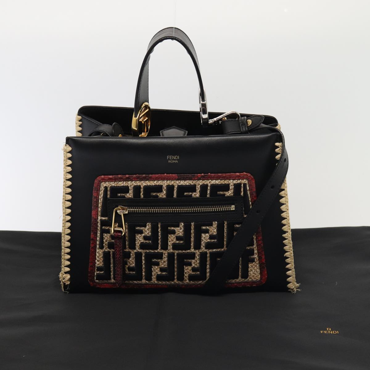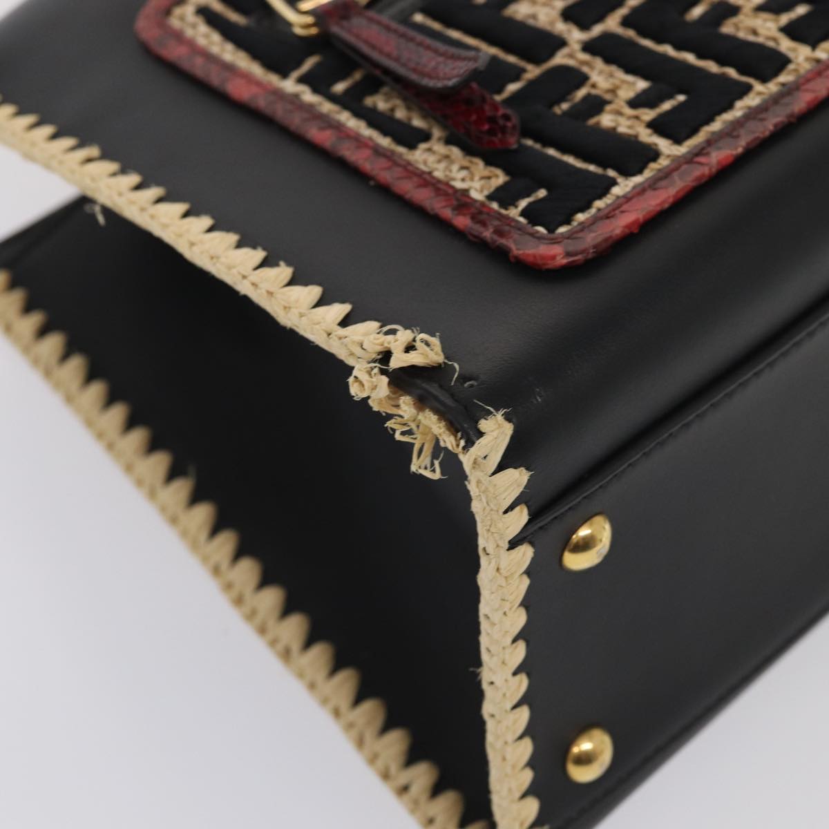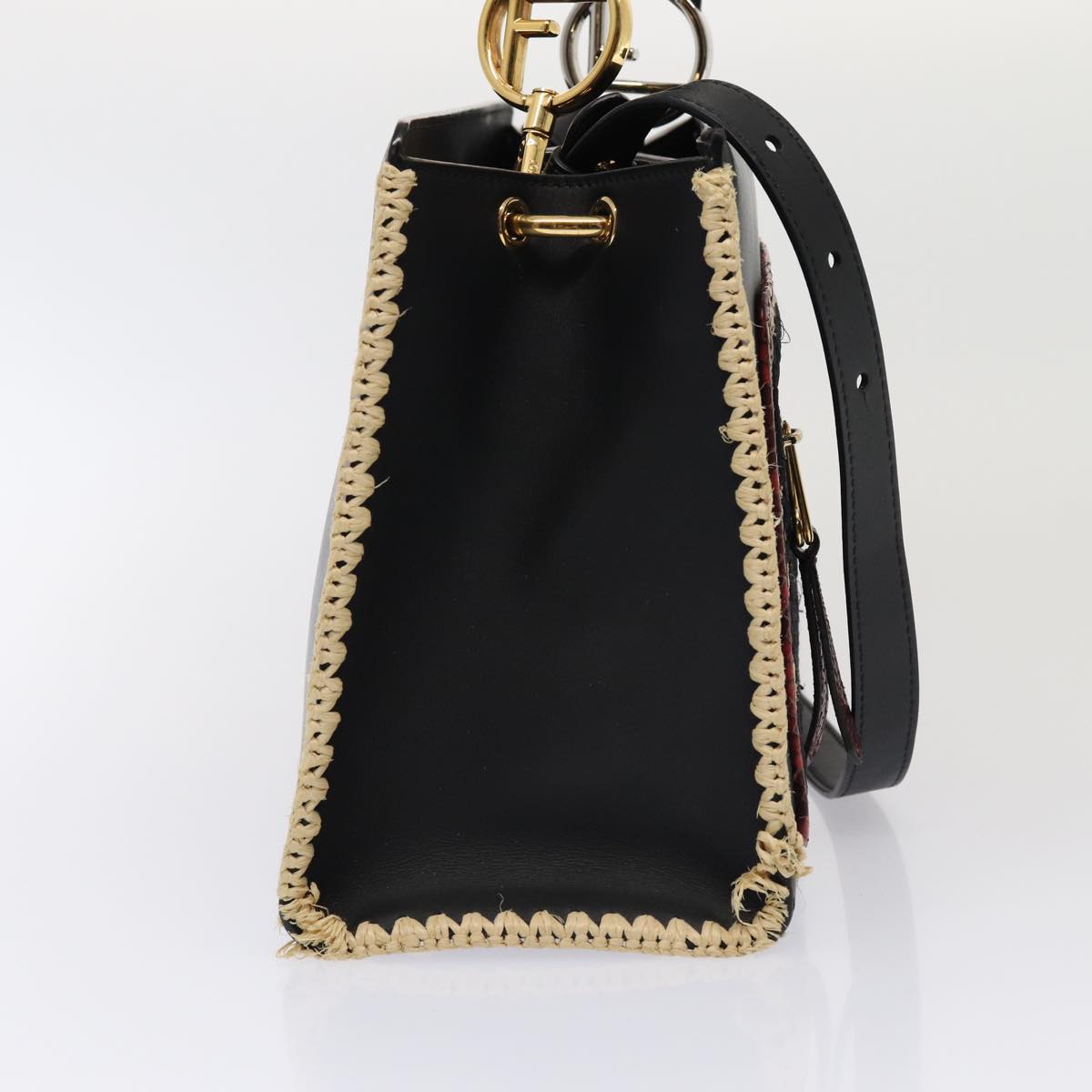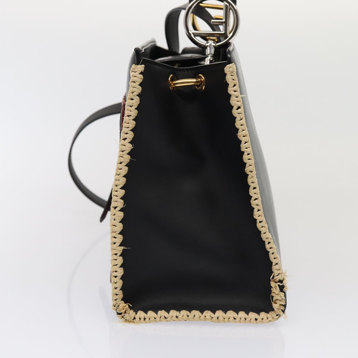FENDI Hand Bag Leather 2way Black Auth 82745