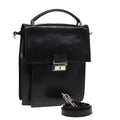 FENDI Hand Bag Leather 2way Black Silver Auth ar12462