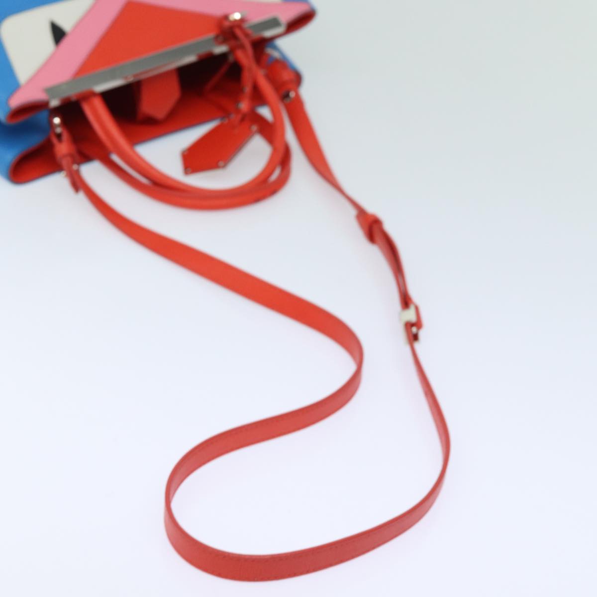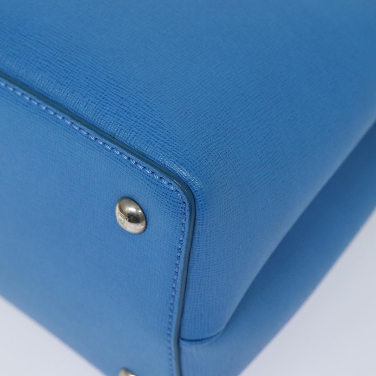 FENDI Hand Bag Leather 2way Blue Auth 77771A