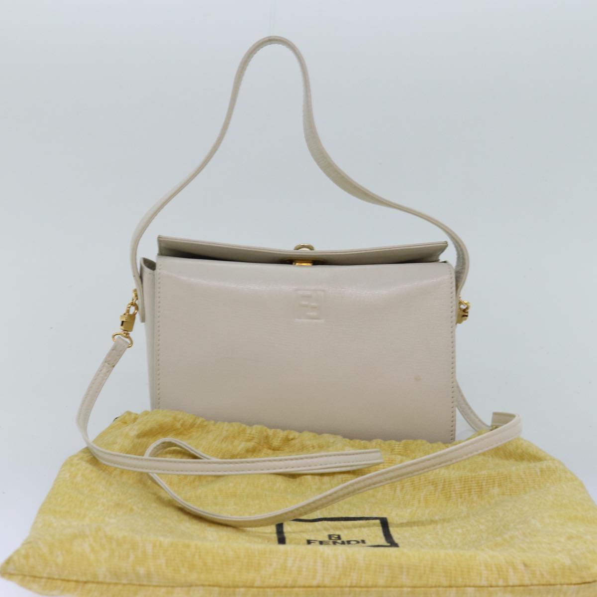 FENDI Hand Bag Leather 2way White Auth yk12624