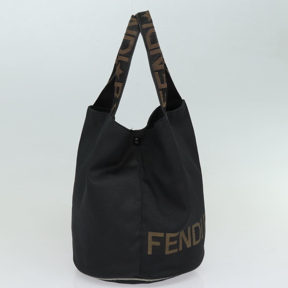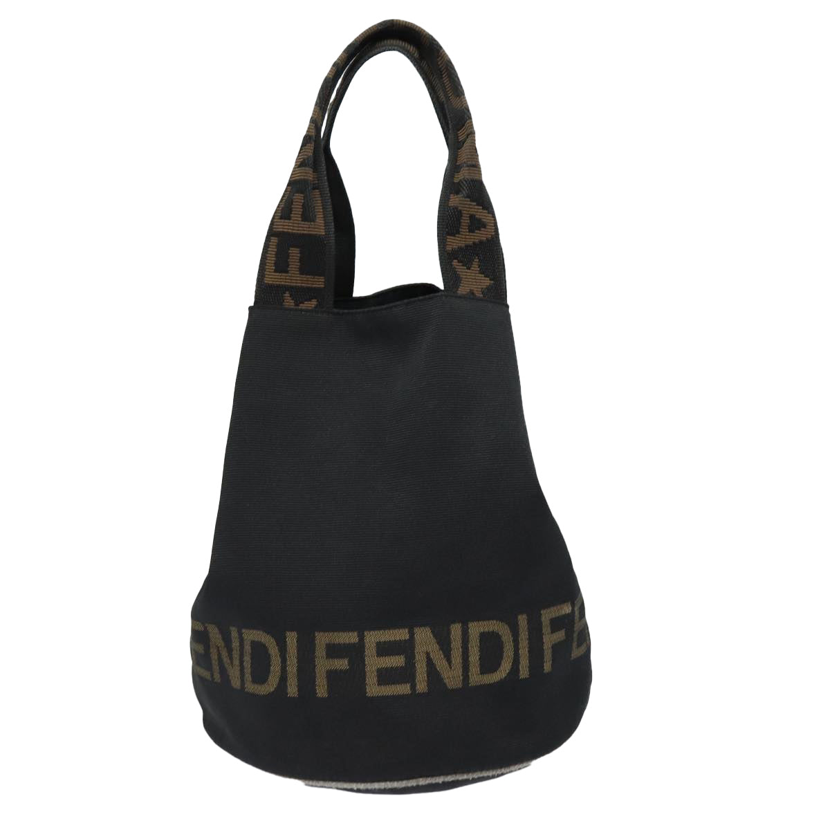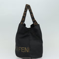 FENDI Hand Bag Nylon Black Gold Auth ar12398