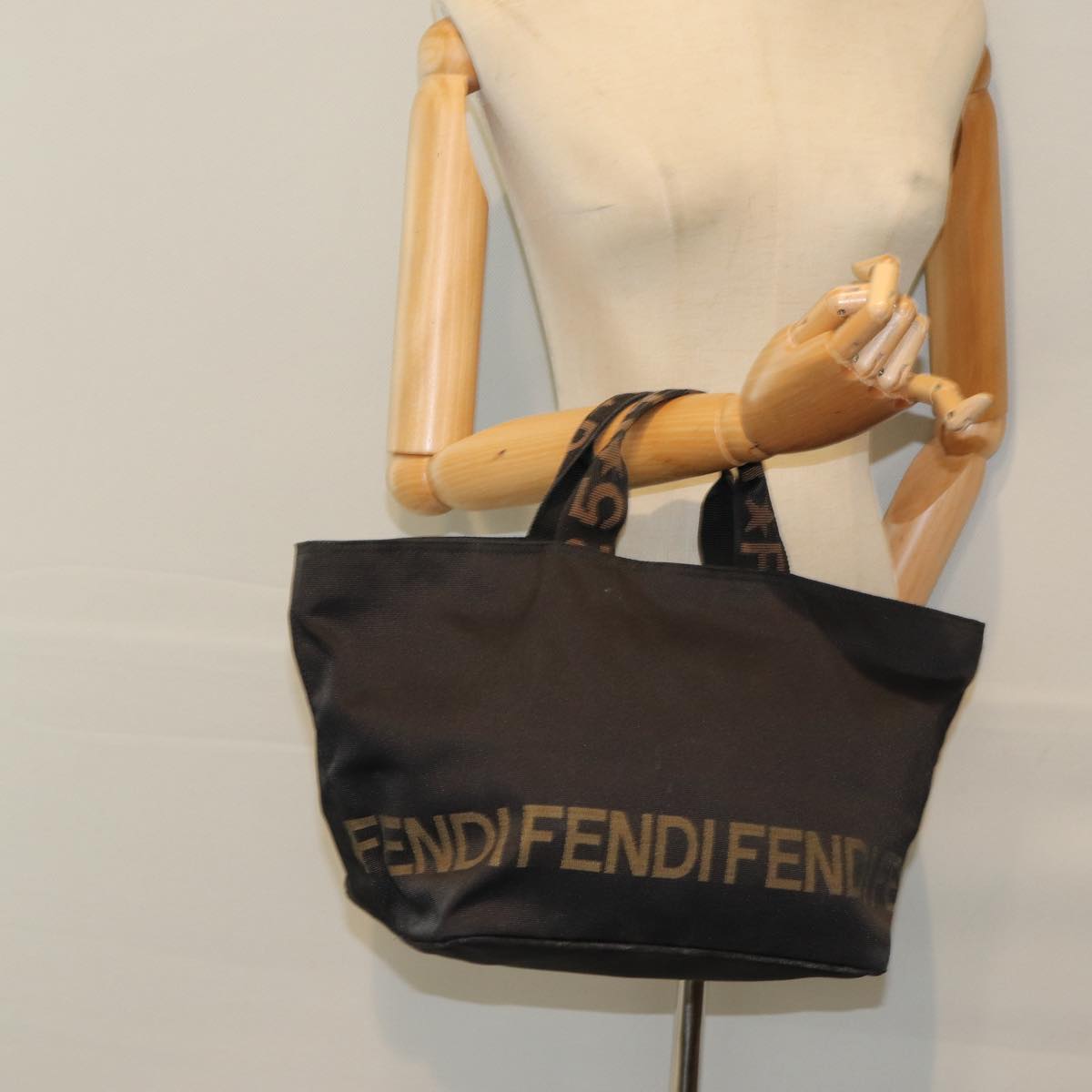 FENDI Hand Bag Nylon Black Silver Auth bs16743