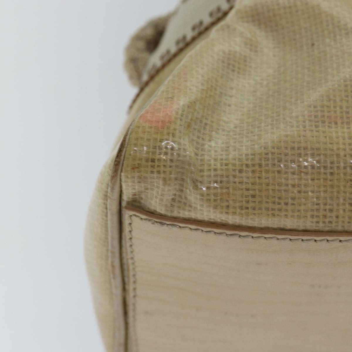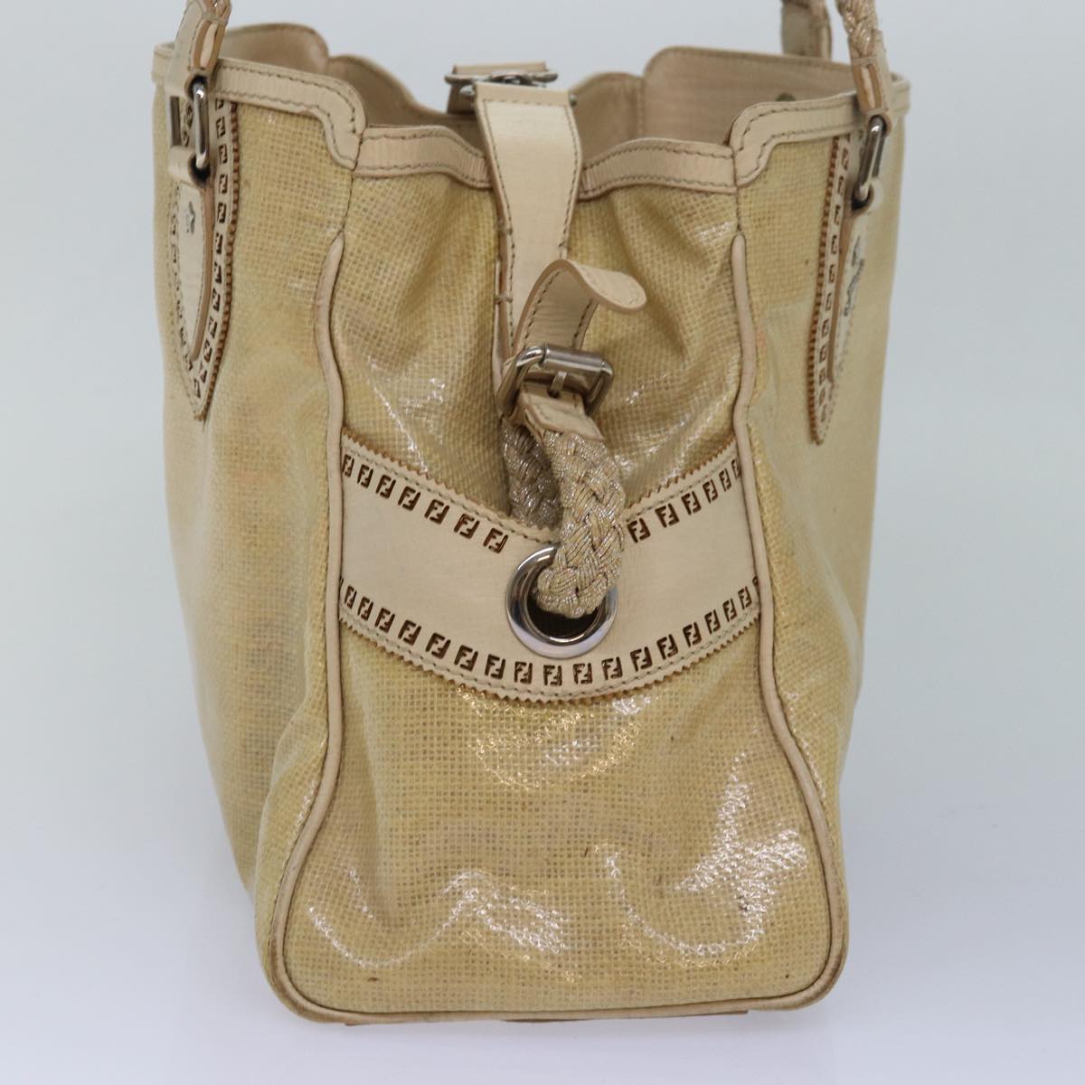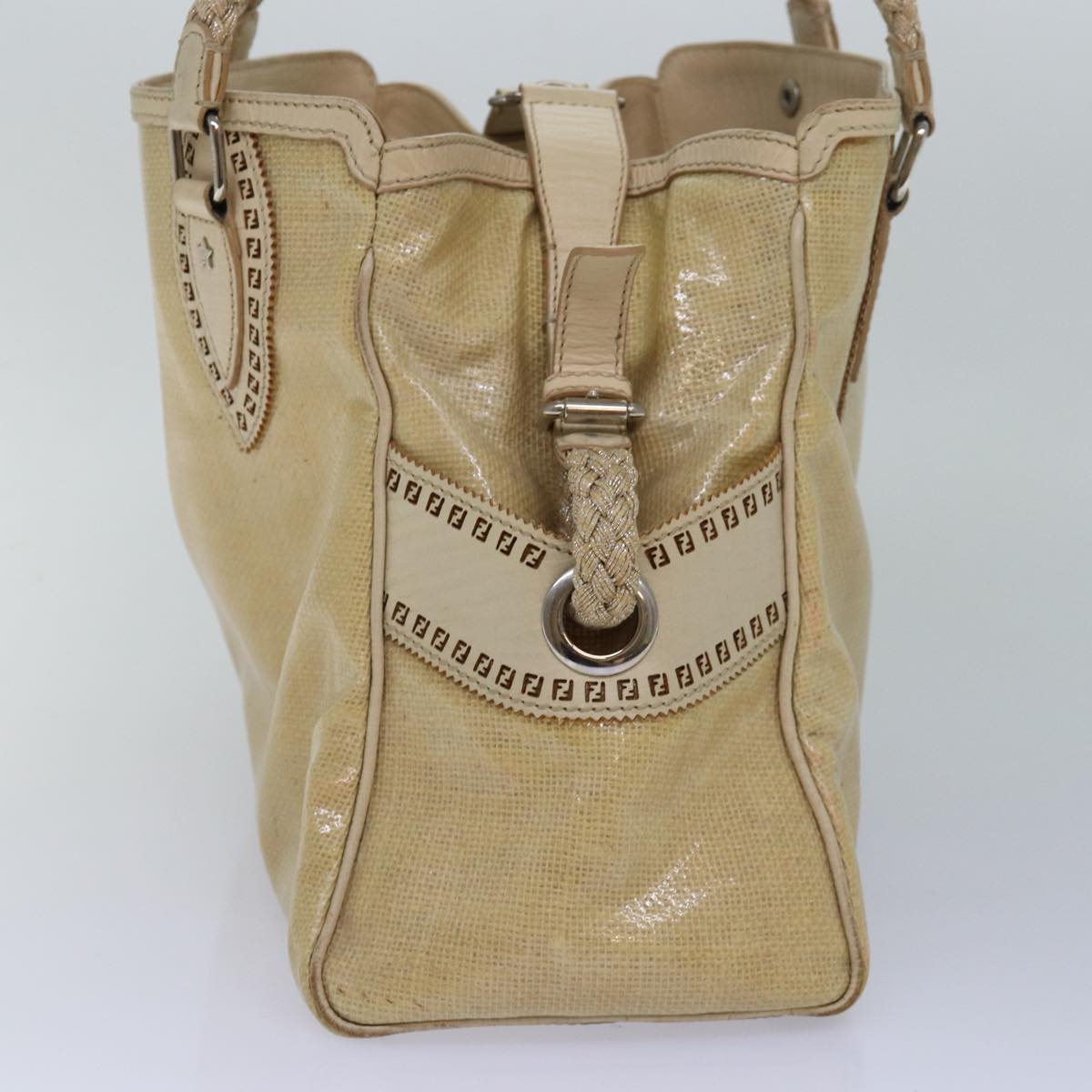FENDI Hand Bag Vinyl Beige Auth yk13660