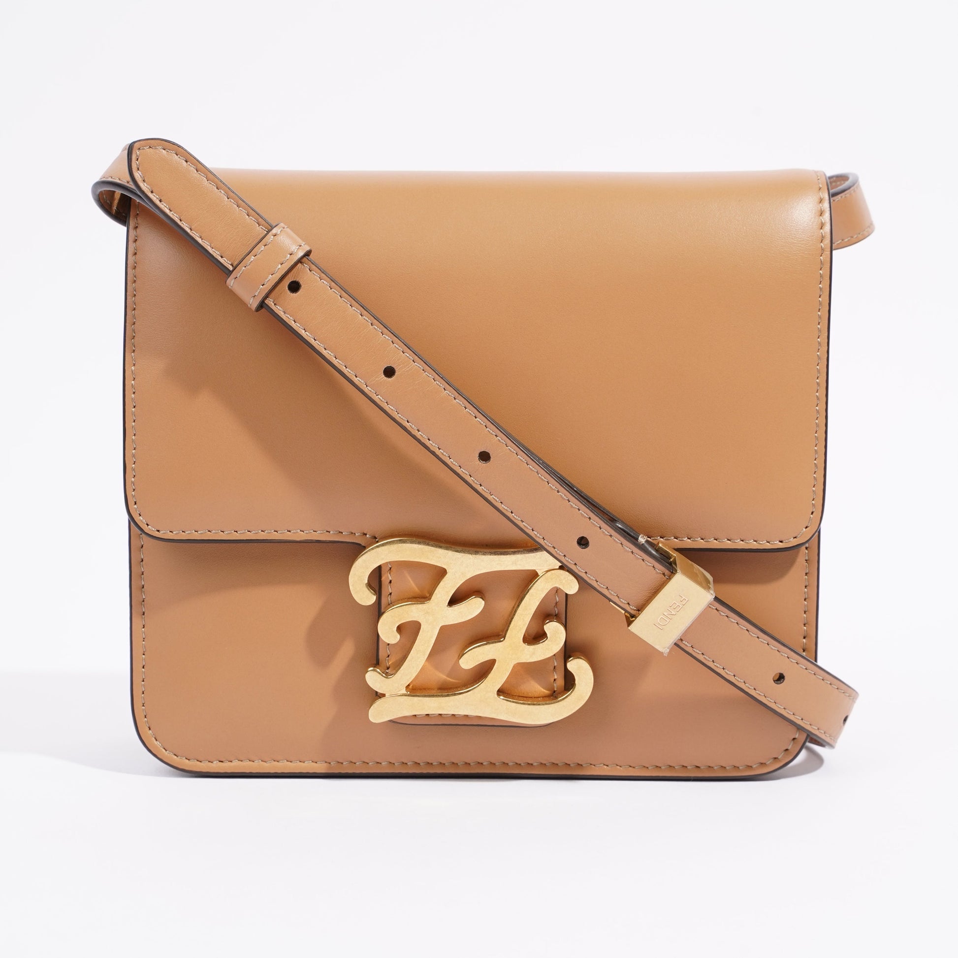 Fendi Karligraphy Shoulder Bag Tan Leather